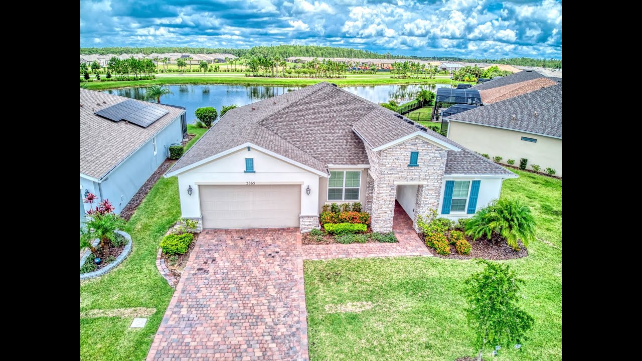 UPGRADES INCLUDES: 8′ doors & ROUNDED CORNERS throughout. LUXURY VINYL PLANK Flooring in all main living areas with 18″ CERAMIC TILE in bathrooms & laundry room. CARPET in bedrooms & Flex Room. GOURMET Kitchen features QUARTZ counters, STAINLESS STEEL appliances, a COOKTOP, DOUBLE ovens, FRENCH DOOR refrigerator, 42″ upper cabinets, PULL-OUT drawers in lower cabinets, RECESSED lights & pre-wired for pendant lights and a Pantry. Primary Suite includes a CUSTOM HUNTER DOUGLAS BLACKOUT SHADE. PRIMARY SUITE has DIRECT ACCESS to the Laundry Room through the SPACIOUS WALK IN CLOSET. The Primary Bathroom has a large walk-in shower w/ bench, GRANITE counters & DUAL SINKS w/ RAISED VANITY. The other two full bathrooms also have GRANITE counters and RAISED VANITY. In addition to the WASHER & DRYER, the Laundry Room has BUILT IN CABINETS and a WASH BASIN. LANAI under builder’s roof is SCREENED and faces north across the pond with GREAT VIEWS of the POND. Garage floor was PAINTED in 2023. Make this newer waterfront home yours!