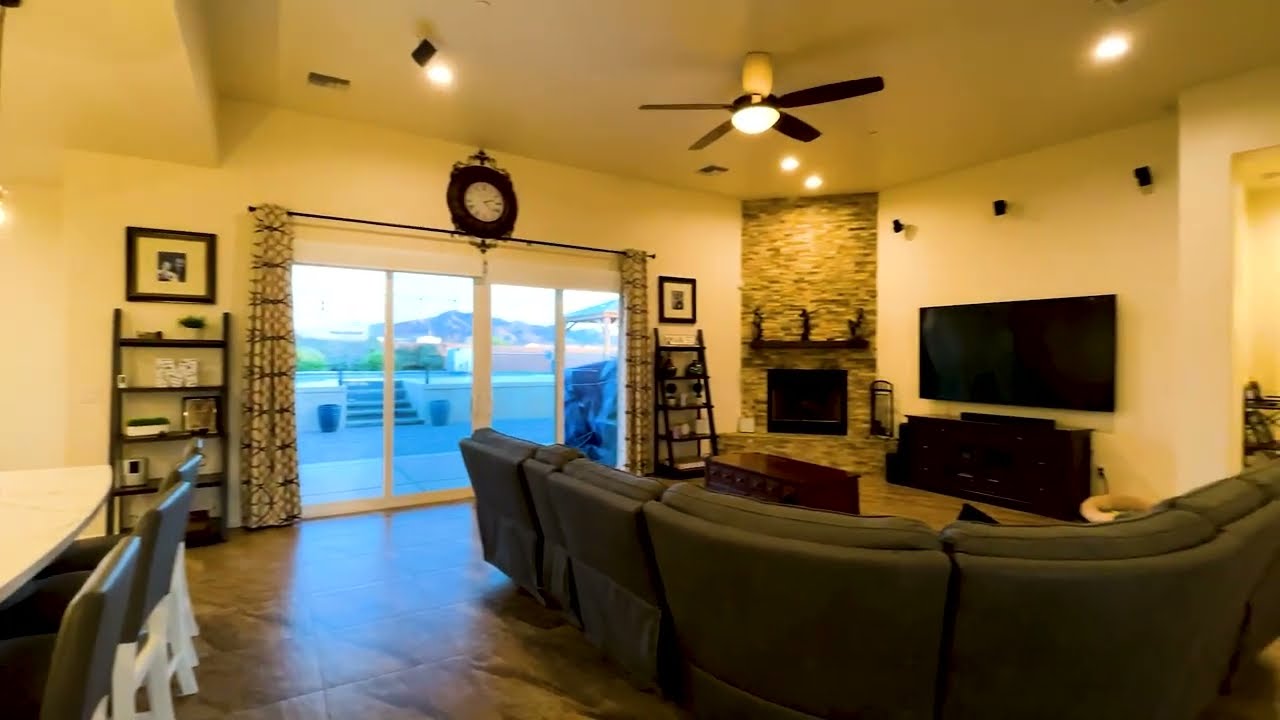 This stunning luxury home is located on 3.86 acres of horse property in Vail, Arizona. The home features a large pool with a solar coil heater, natural travertine pony wall, a large shed that can fit one full car garage, a four-rail white 5-foot fence at the entrance with two gates, a landscaped yard, an outdoor gazebo, 16 panel solar, an outdoor travertine fireplace, OSB board house wrap, Pella insulated windows, no HOA, 12-foot ceilings in the family, dining, and entrance, 10-foot ceilings throughout the rest of the house, an insulated wall in the family room for noise reduction for the primary bedroom, , a 36-inch gas wood fireplace with stone wall, surround sound, upgraded lighting, 8-foot upgraded 6-panel doors, upgraded tile throughout, quartz countertops, a large gourmet kitchen with two breakfast bars and a nook, a Zline gourmet stove with six burners (gas and electric), a microwave stove, a limestone kitchen backsplash, kraftmaid soft closing kitchen cabinets, a custom steel double hallway door with waterfall glass, a sliding door that is 12 feet long and 8 feet tall, a large claw foot bathtub, showers wrapped with travertine stone to the ceiling, a custom 8-foot steel insulated double front door with insulated glass, a large walk in closet with wood cabinets, a large laundry area with room for a full refrigerator, garage cabinets with a workbench, a large block backyard wall with three gates, 8 feet French doors into an office/game room, a large oversized three-car garage, a salt water softener, and upgraded carpet and padding.