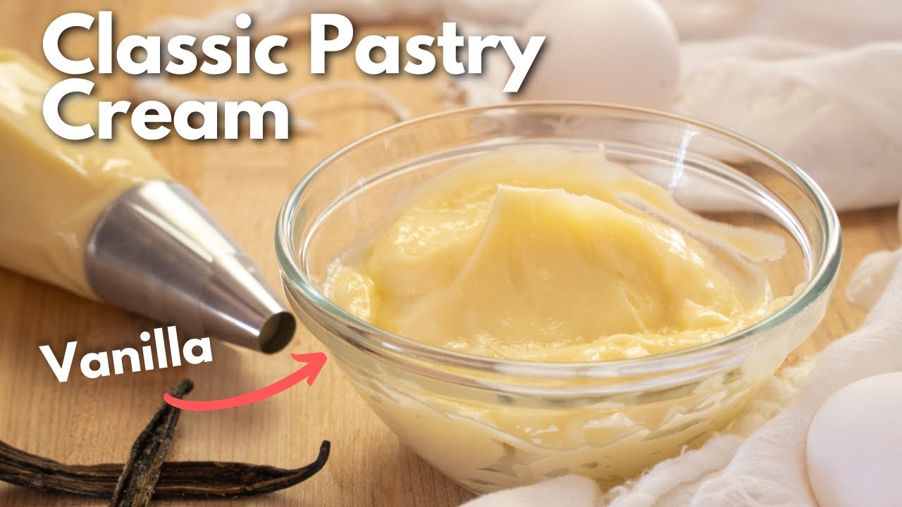 Vanilla Custard also known as Pastry Cream or Crème Patissière is a base recipe used in so many other recipes and desserts! Its vanilla flavor and silky texture pairs perfectly with every flavor and texture! You can definitely flavor it as you like! You can find Vanilla Custard in Éclairs, Fruit tart or many recipes you already know! Pastry Cream is a classic French recipe! It is one of the recipes that is so important to master! Try this delicious cream and Enjoy 😀