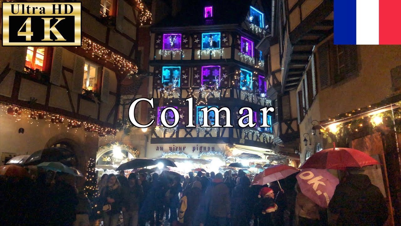 A walk in Christmas market in Colmar. the Colmar Christmas Market is the most attractive and atmospheric Christmas markets in all of France.