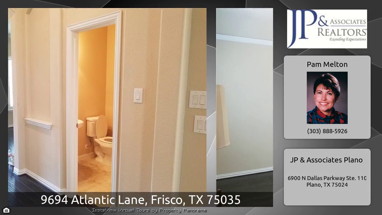 The Virtual Tour for the property at 9694 Atlantic Lane, Frisco, TX 75035 listed for $399,900: Other homes for sale by Pam Melton of JP & Associates Plano: Immaculate brick 1 story, 3 bed, 3 bath 3 car garage. Gleaming hardwood floors, gas fireplace office with double French doors. Formal dining rm, large eat in kitchen area. Gorgeous kitchen with granite lsland has pendant lights, under cabinet lighting on 42 in. cabinets. large pantry and plenty of storage. All appliance, Refrigerator, washer and dryer stay. Brick patio looks at private grassy backyard. Plantation shutters and custom …