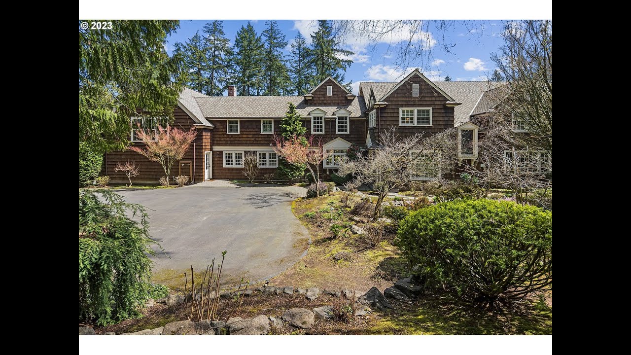 This gorgeous, classically-updated 1920s Dunthorpe estate is nestled on a large, gated lot that ensures maximum privacy. At the heart of the home, the gourmet kitchen offers cabinet-faced appliances, marble countertops, a 5-burner Wolf range, farmhouse sink, and a large butcher block island. French doors allow direct access from the kitchen to the back patio, a convenient layout for entertaining and outdoor dining. Adjacent to the kitchen, the formal dining area, accented by coffered ceilings with recessed lighting and a large bay window, is perfect for memorable gatherings with friends and family. After dinner, retire to the light-filled living room, anchored by a marble fireplace. Dual sets of French doors lead to the back patio, seamlessly blending indoor and outdoor living. For more casual gatherings, the cozy family room boasts oversized windows, vaulted ceilings, and an additional marble fireplace. The southern wing of the home houses a unique home office setup, complete with a gas fireplace and built-in shelving. Upstairs, a sprawling recreation area affords more than 1,000 square feet of play space with vaulted ceilings, a basketball hoop, and an entertainment room. On the opposite wing, the primary suite features stunning views of Mt. Hood, a fireplace, access to a private balcony, a spacious walk-in closet, and a luxurious en suite bath with deep soaking tub and dual-head walk-in shower. Four bedrooms, two full baths, and a laundry room complete the upper floor, while an additional lower level offers abundant storage. Along the rear of the home, an expansive brick patio sets the stage for outdoor entertaining. Multiple seating areas, a dining space, grill station, and fire pit overlook the rolling lawn. The front yard is equally captivating, boasting a custom cascading water feature and pond encircled by lush landscaping. Located in the prestigious Riverdale school district, just minutes from Lake Oswego and downtown Portland.