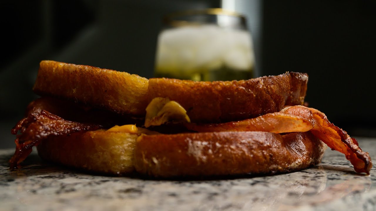 3)Melt butter in pan, add some garlic and place bread already dipped in egg mixture