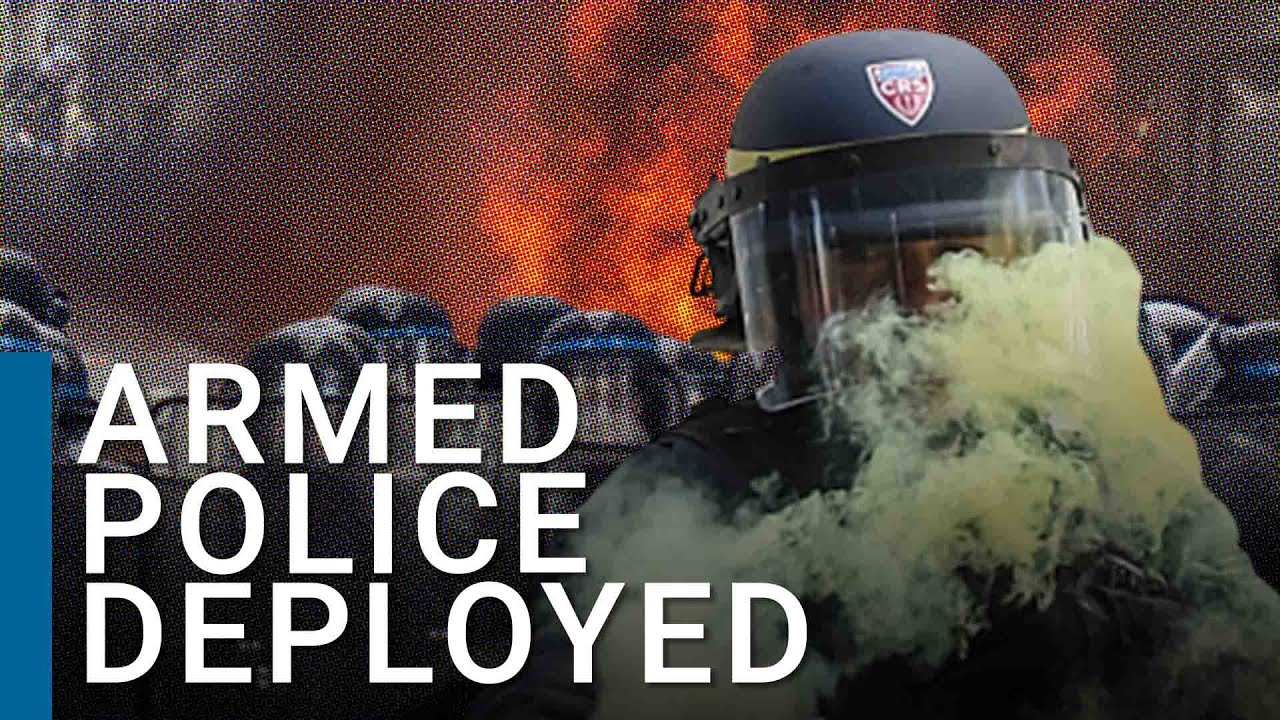 Around 45,000 police, specialised units and armoured vehicles are brought into the French cities Paris, Lyon and Marseille amidst violent riots.