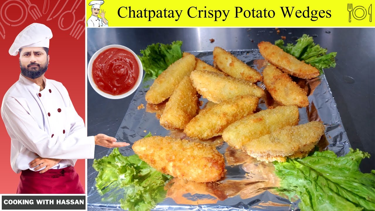 Hi, I am Hassan, and welcome to my channel, Cooking with Hassan. In this video, I’ll make Chatpatay Crispy Potato Wedges recipe and teach you how to make this recipe at home easily. I hope You will like the video, and if you do so, press the subscribe button and the bell icon for more recipe videos like this.