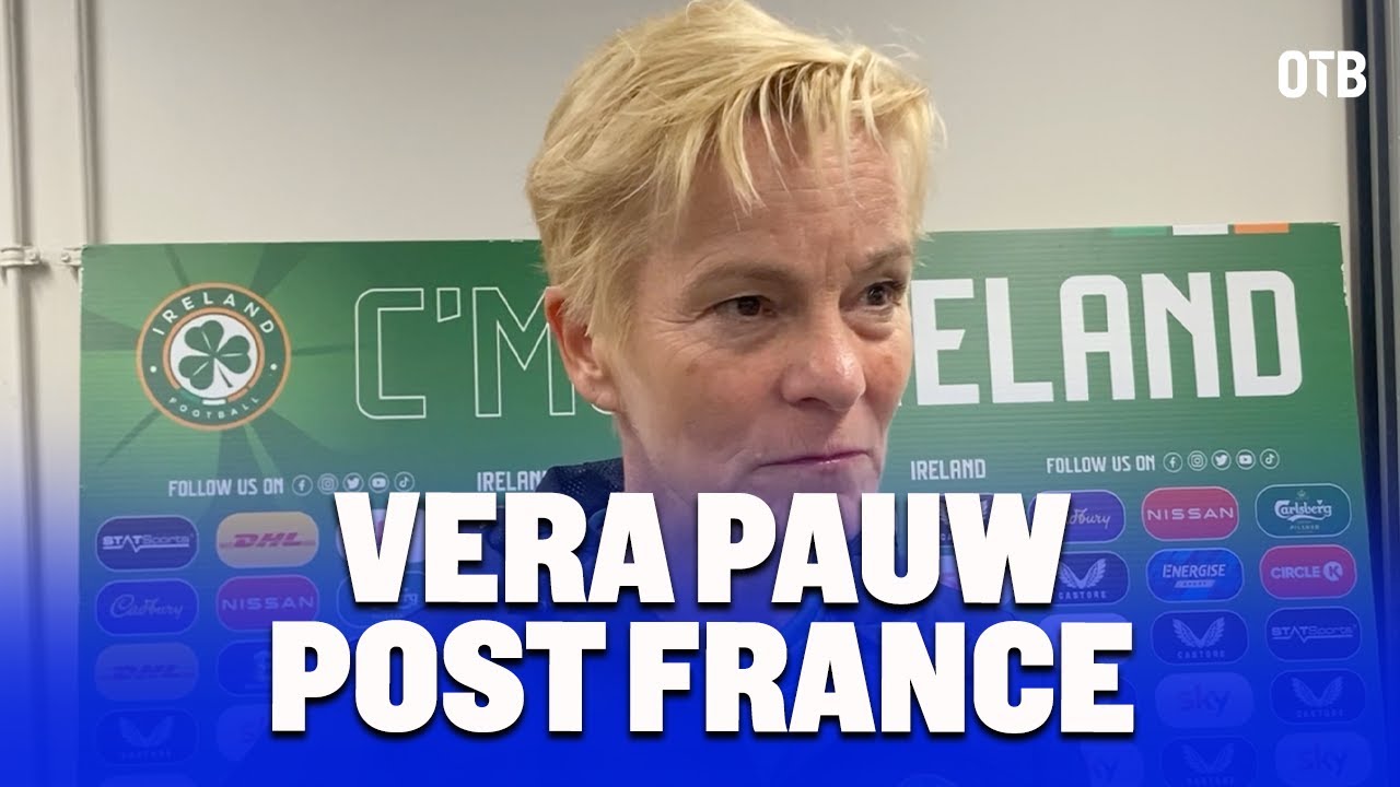 Vera Pauw and Kyra Carusa talk to Kathleen McNamee after Ireland’s 3-0 defeat to France.