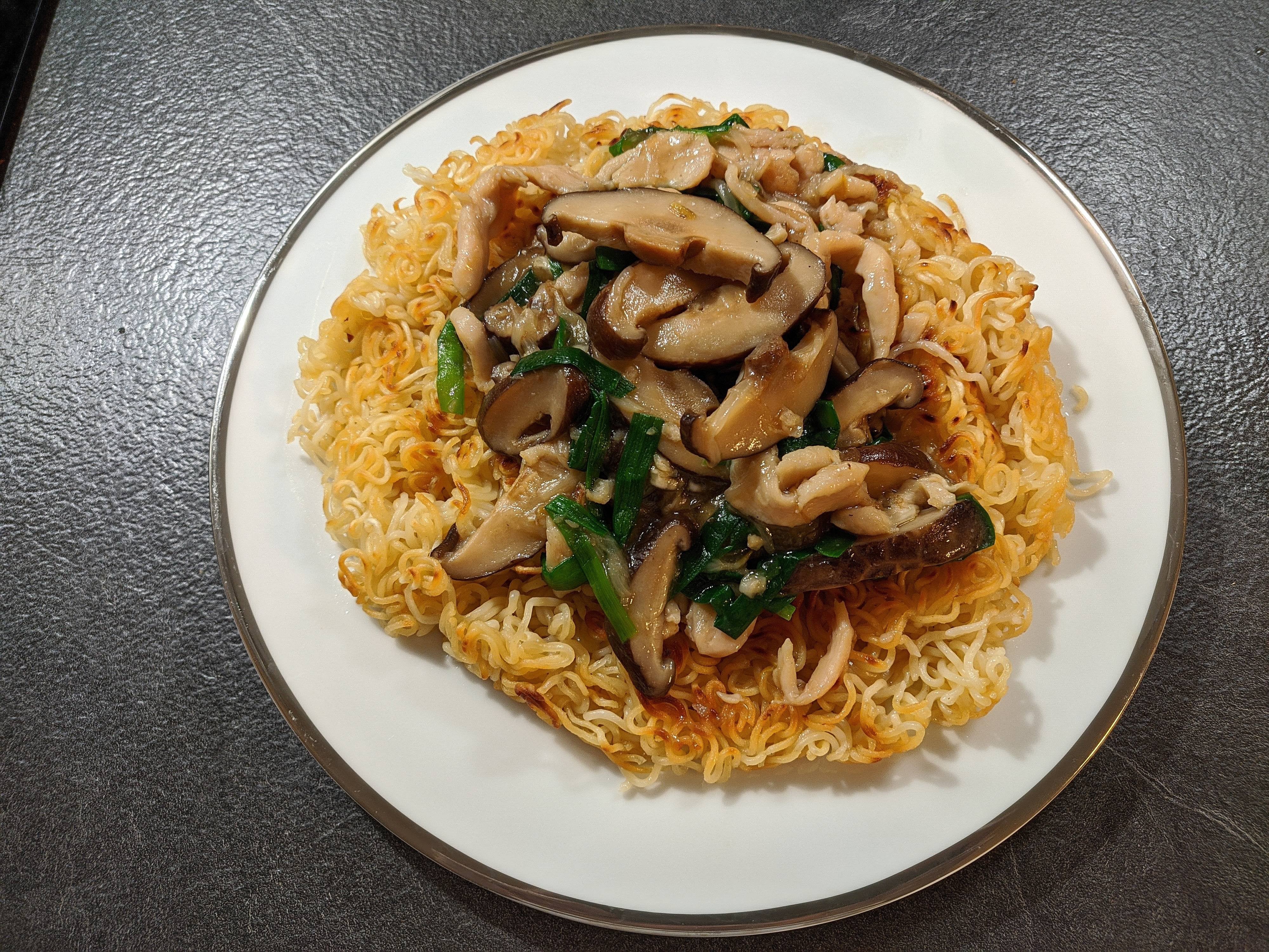 Plat cantonais très simple à réaliser, tellement bon et qui me rappelle tellement de souvenirs. Il s’agit de nouilles sautées/frites accompagnées de légumes, champis, pousses de soja et viande. La particularité de ce plat est que d’un côté vous avez une partie des nouilles qui sont frites et de l’autre côté vous avez le moelleux des nouilles. Le meilleur des deux mondes !