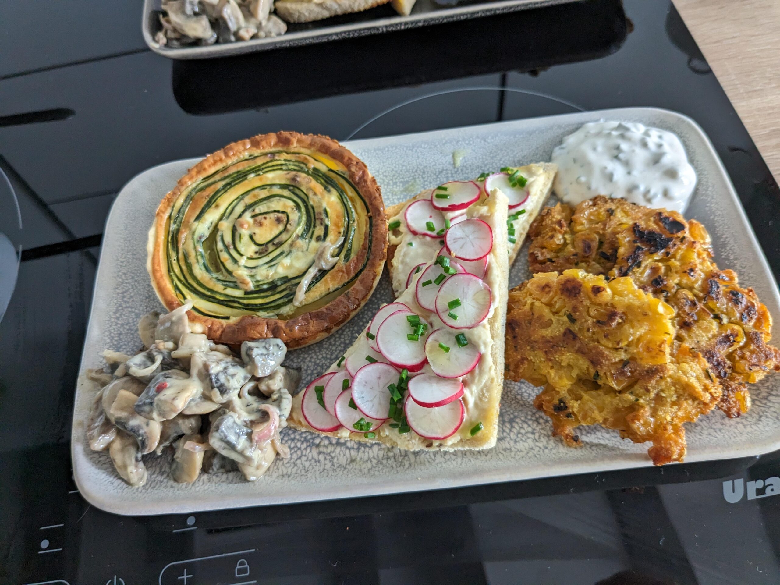 Dans le détail : salade de champignons risolés sauce citron/moutarde, petite tartelette courgette, toasts houmous et radis , et beignets de mais sauce crème ciboulette vinaigré. by dvd76 Bonne BouffeCuisine d'ici et d'ailleurs 2 Comments clemmit_ 3 years ago La tarte à la courgette est trop belle *_* AlwayscrxshNeverlxve 3 years ago La quiche a l’air incroyable et tout à l’air trop bon 🤤Write A CommentYou must be logged in to post a comment.