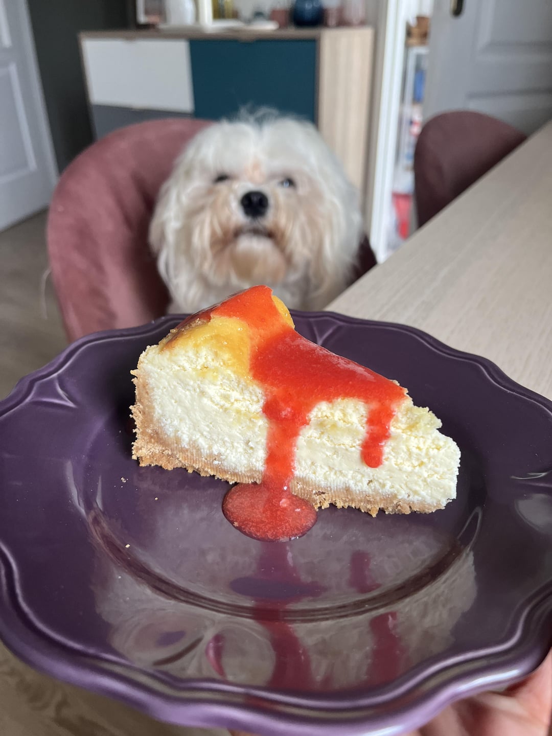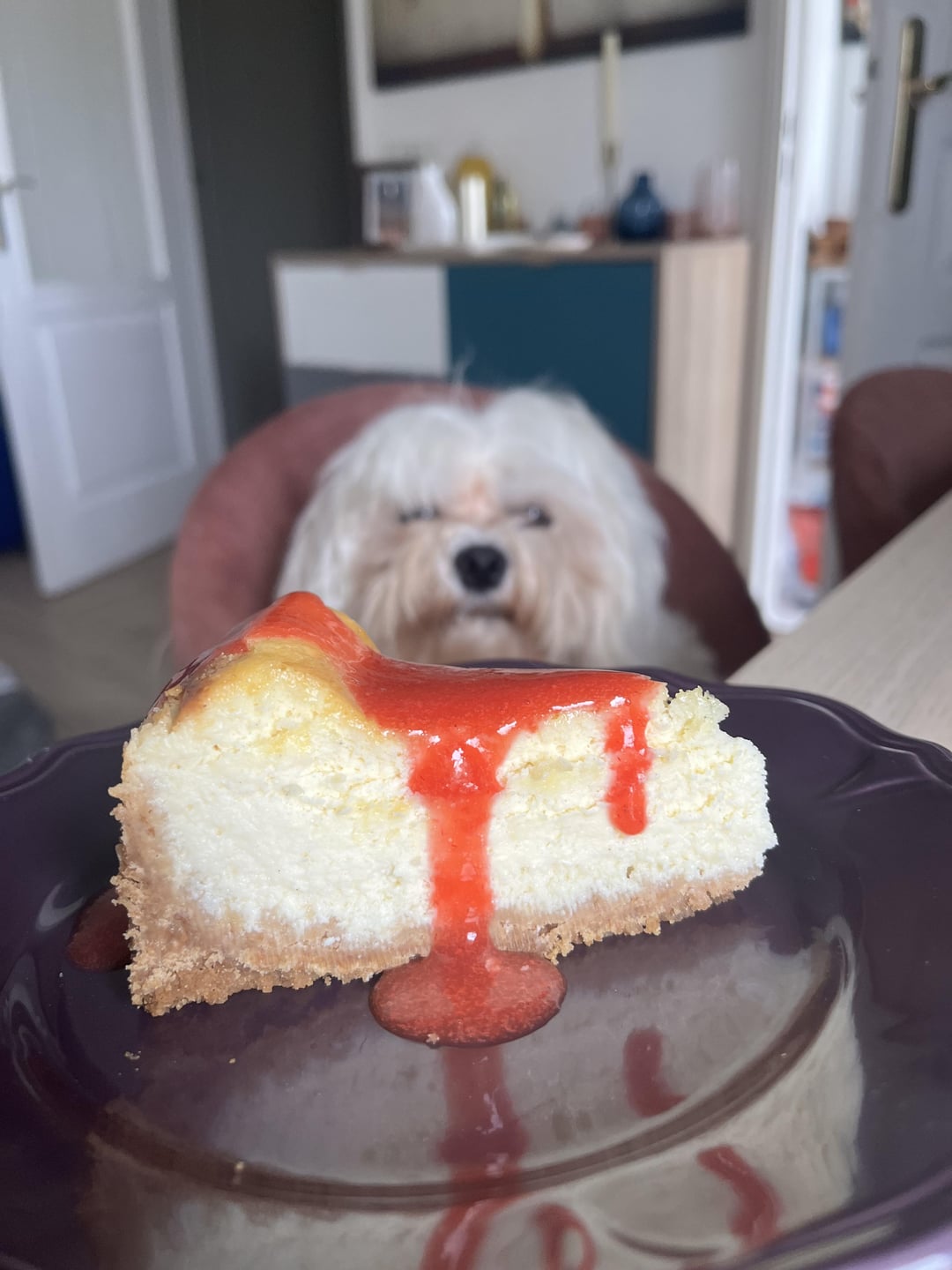 Non ce n’est pas un cheese cake. C’est une propriété privée qui finira tôt ou tard dans l’estomac du cabot qui a bien décidé qu’il le ferait sien. Avec ou sans consentement…