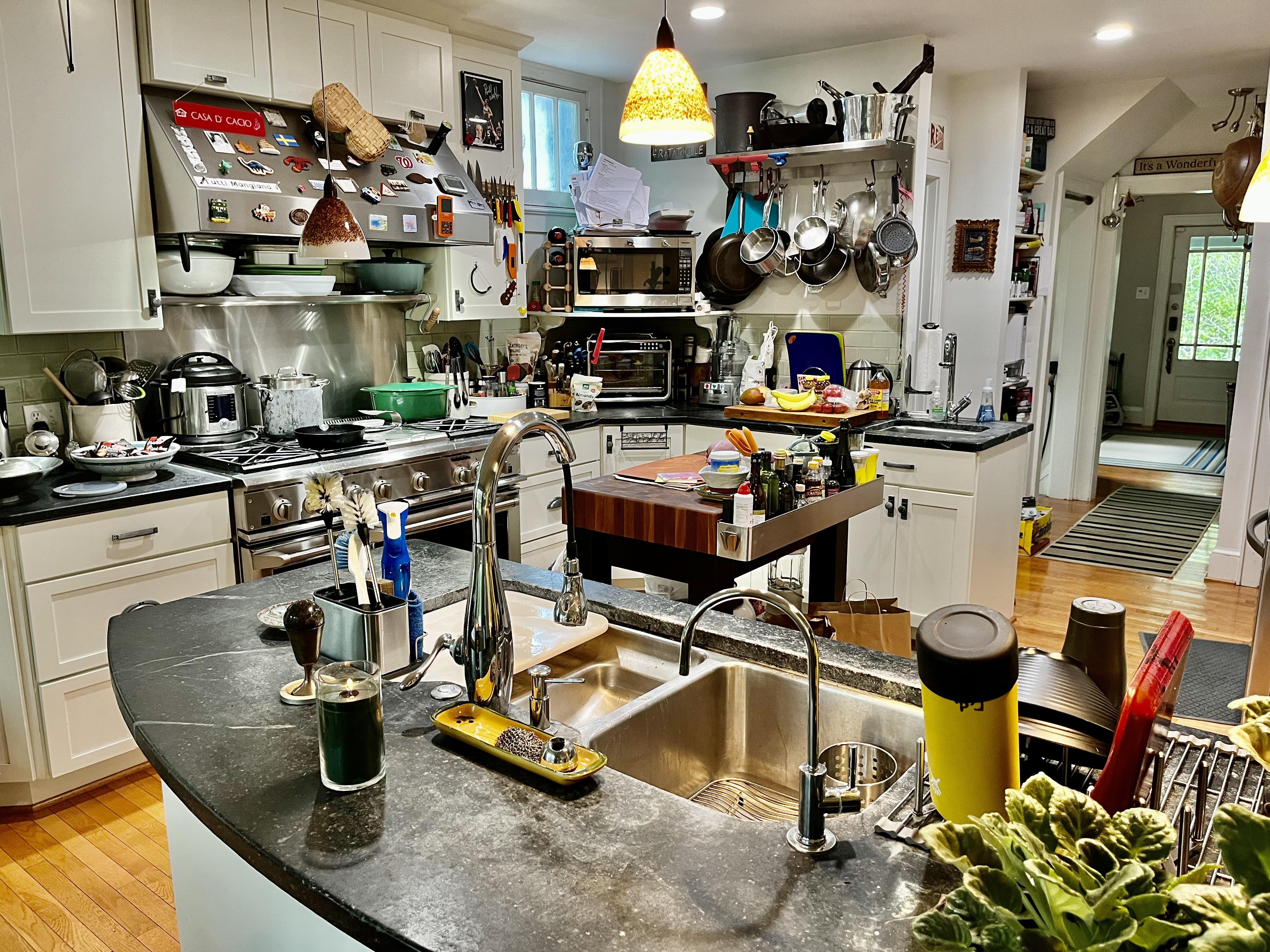 I worked in restaurants for years and you just learn that even within the clutter the idea and value of mis en place holds true. So long as something is “in its place,” where it’s supposed to be , next to its outlet or the sink or the trash, etc., it’s not clutter, it’s just density.