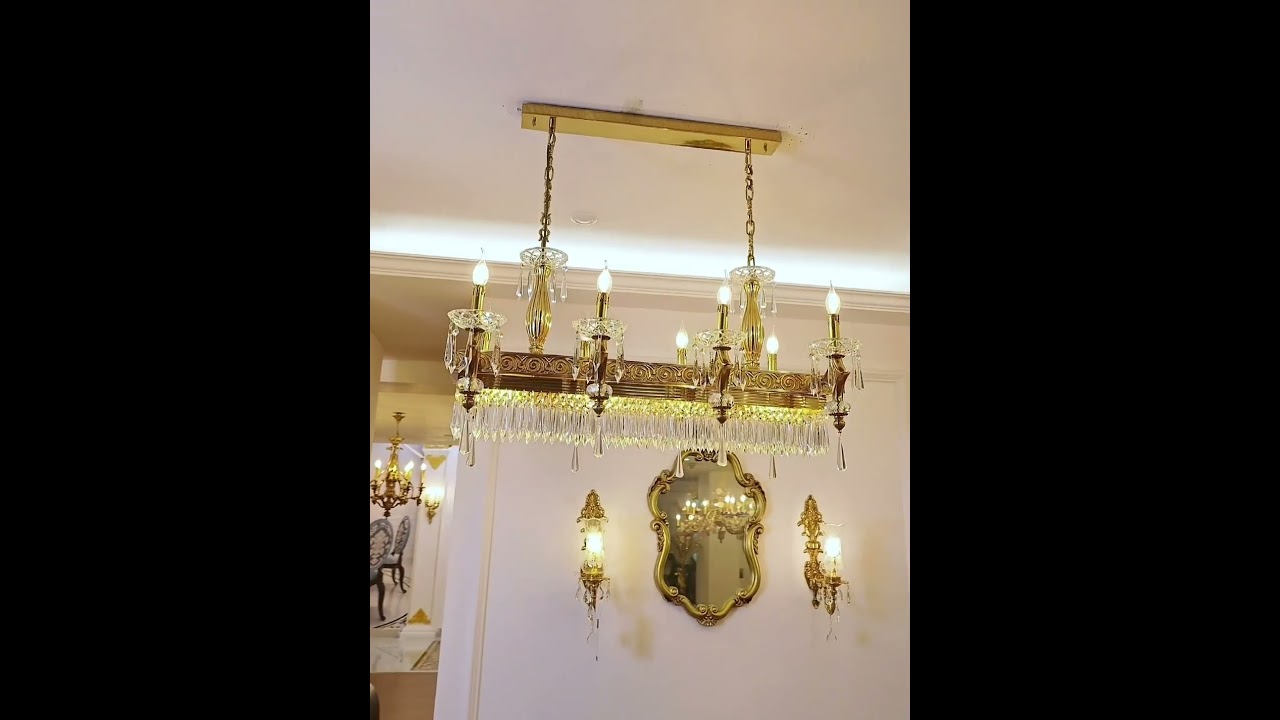 The overall color of the chandelier is presented as a natural metallic color of brass, and the crystal embellishes the lamp body, which adds to the overall sense of sophistication. Clear lines, symmetry, parallelism and style unity, crystal also adopts a clear, simple, linear design, and the style of the lamp is suitable.