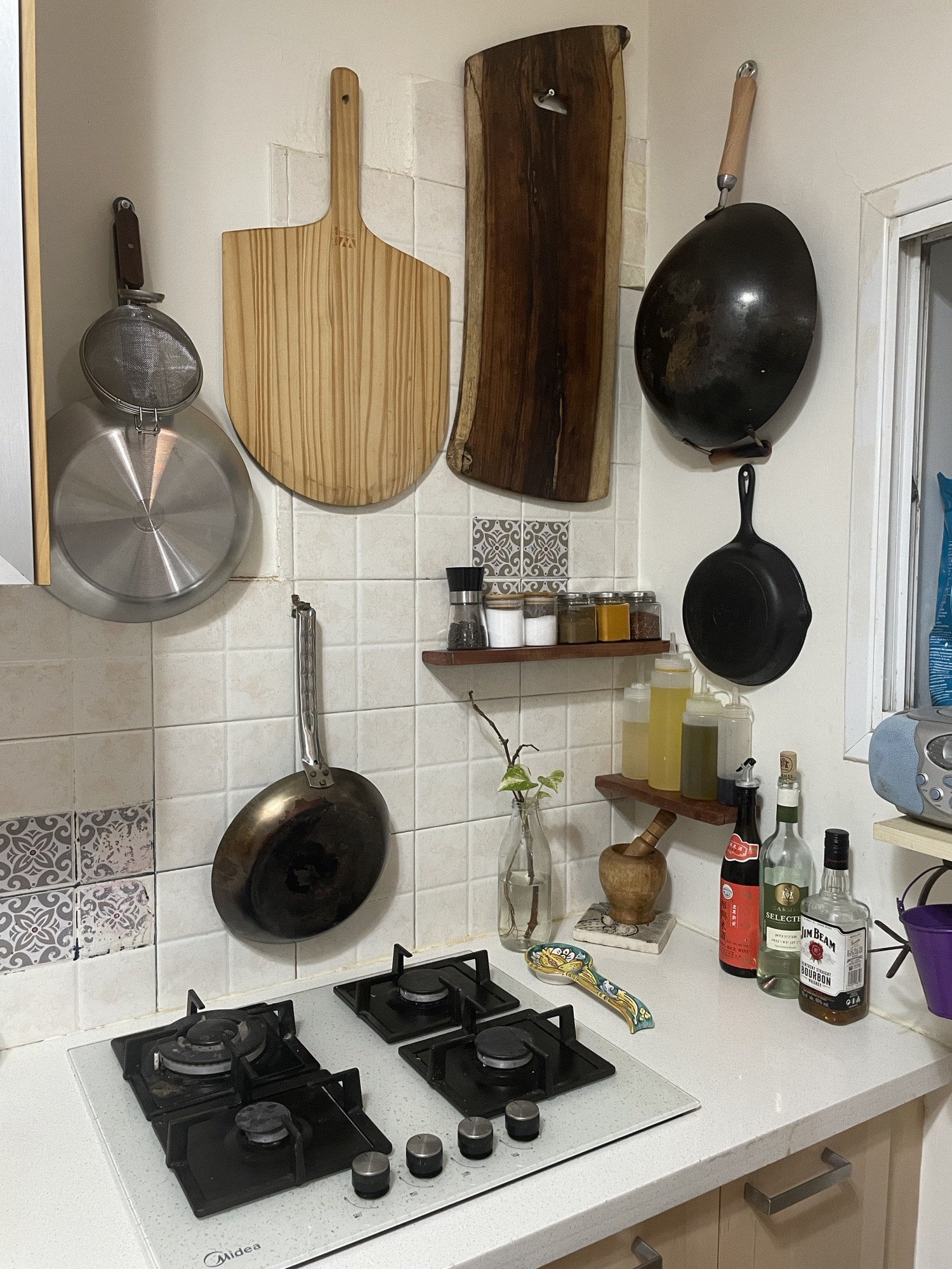 I’m getting ready to replace the backsplash behind my stove and want to do the same thing with some pans. How do you keep them from chipping the tile? Just very careful placement?