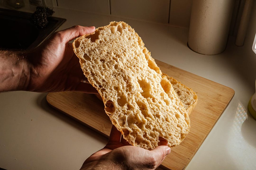 Je me suis fait un pain Ciabatta maison (le cousin italien de notre baguette) ultra croustillant à l’extérieur et moelleux à l’intérieur ❤️
