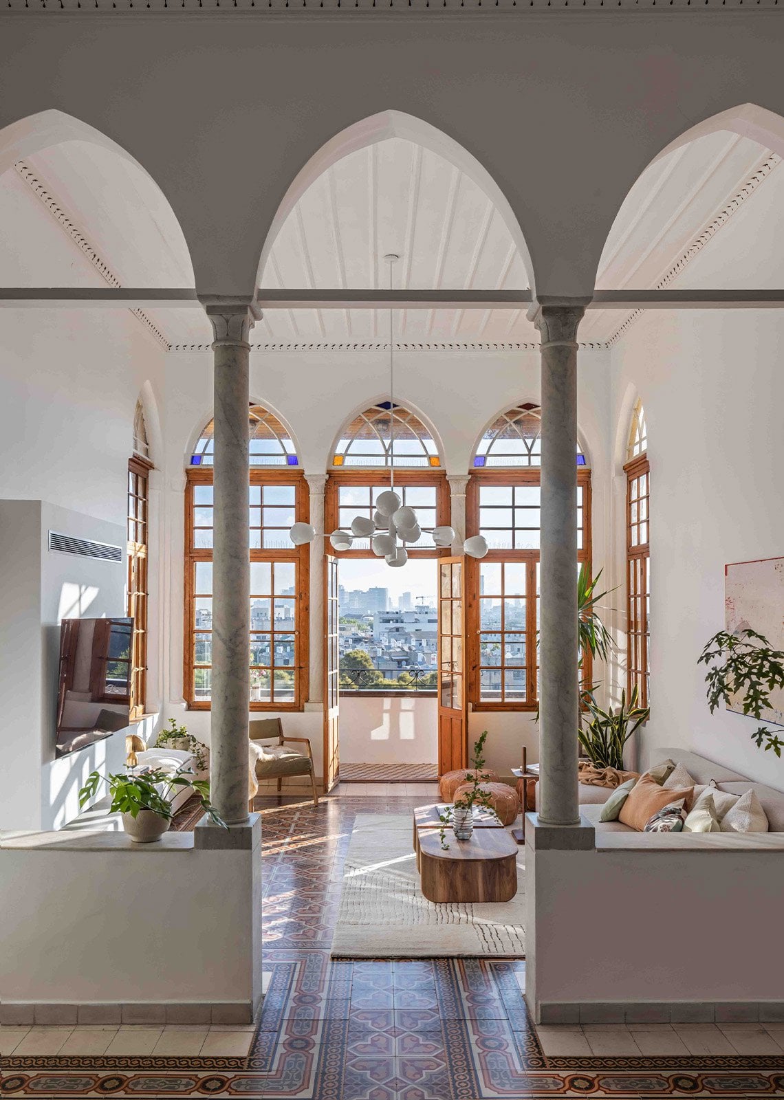 Living room opening to the balcony in a renovated 19th-century Ottoman-era house, Jaffa, Tel Aviv, Israel [1140×1600]