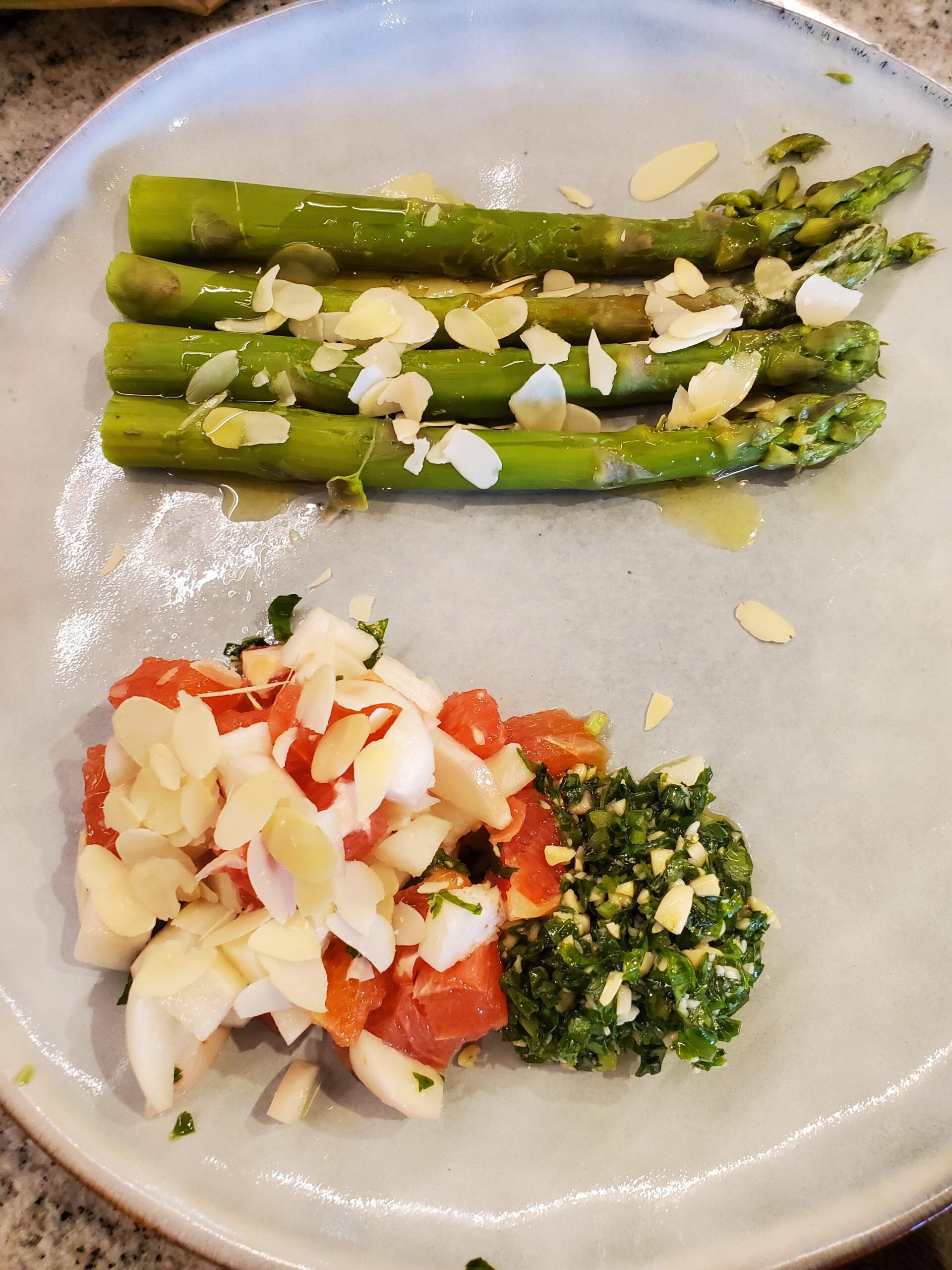 Asperges et pesto a l’ail des ours avec une salade pomelo/navets