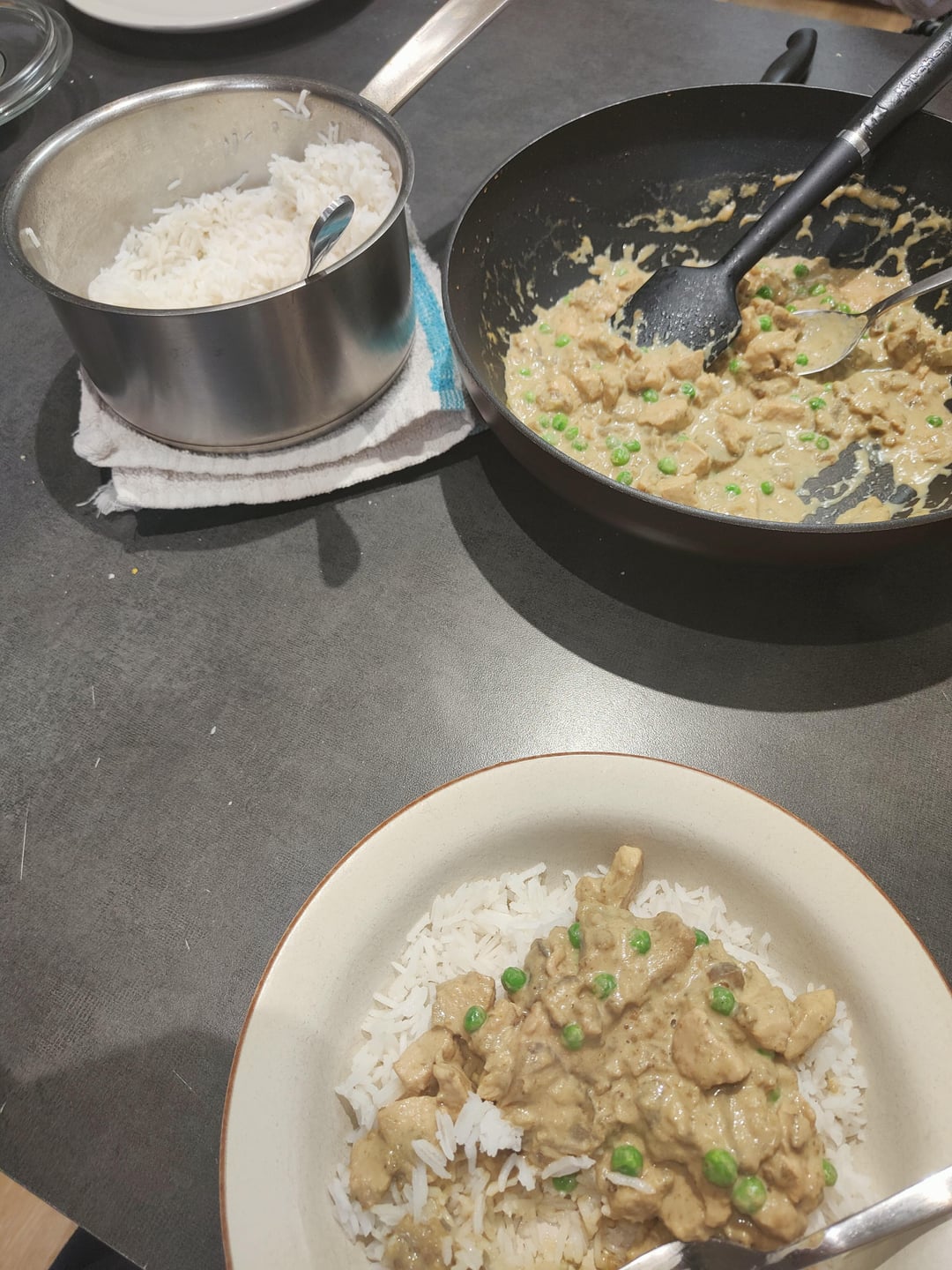 Et comme suggéré par d’autres, le riz d’un côté et le curry de l’autre c’est plus présentable !