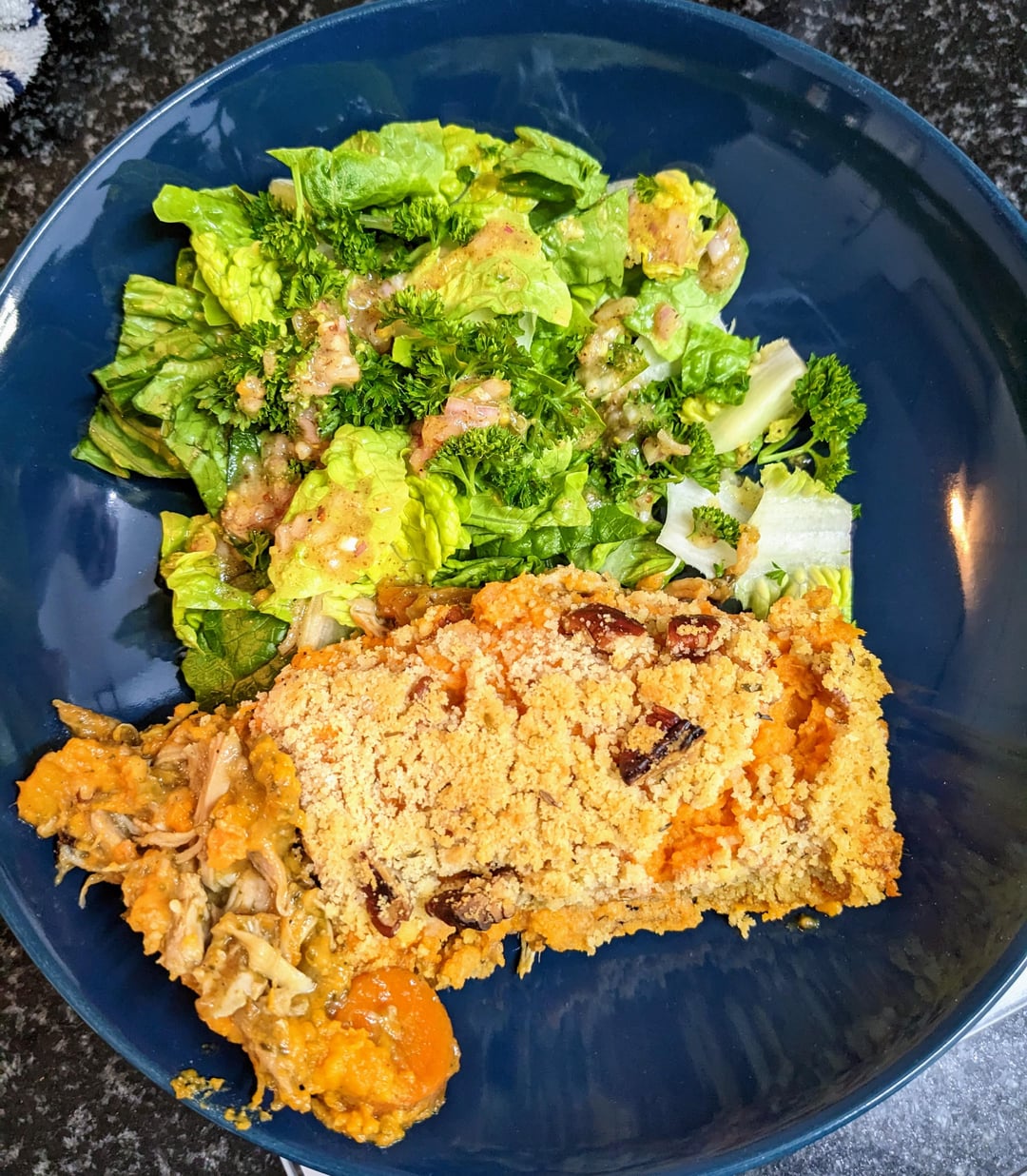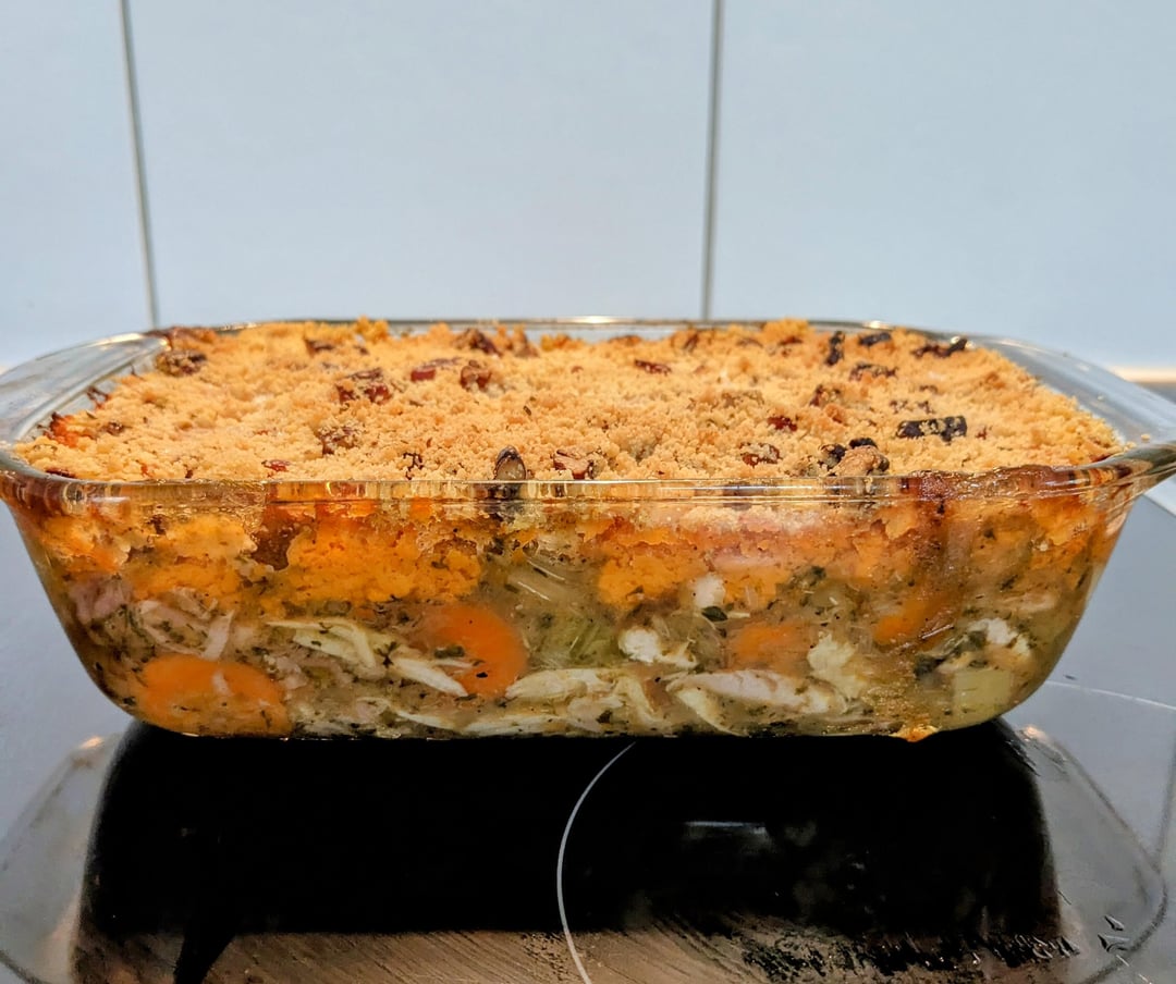 Fini avec une couche de crumble au par mésange et aux noix de pecan.