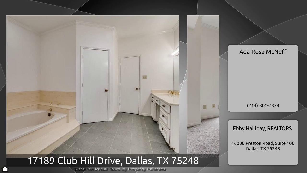 The Virtual Tour for the property at 17189 Club Hill Drive, Dallas, TX 75248 listed for $799,900: Other homes for sale by Ada Rosa McNeff of Ebby Halliday, REALTORS: Enjoy million dollar views of the 16th tee box, fairway and 15th green of the Bent Tree Country Club Golf Course from most rooms in this Bent Tree Royal traditional home. The large formal living room was designed with full length windows on three sides to take full advantage of the lush setting. French doors, with windows on each side, are just across from the formal dining room and the breakfast area also enjoys golf course …