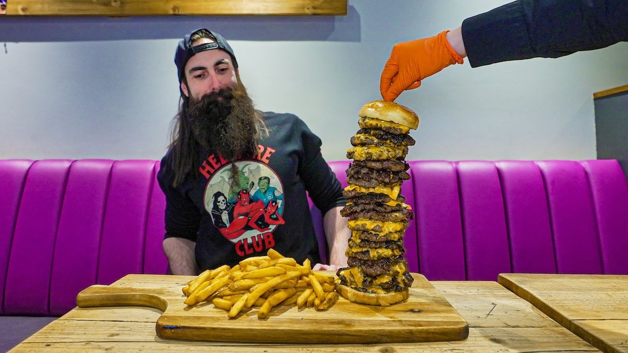 The rules to this one are a little different, in that there are two ways you can win, get the meal FREE and a spot on their wall of fame. Either you have to beat the record number of patties consumed in one burger tower within 30 minutes OR you have to equal the current record number of patties eaten in a quicker time. Stands to reason that I’d try do both at the same time…