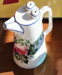 Pretty sure this is a variation of the double spouted ceramic pot which had one nozzle for pouring water, the other for pouring tea – but that’s the closest I could find