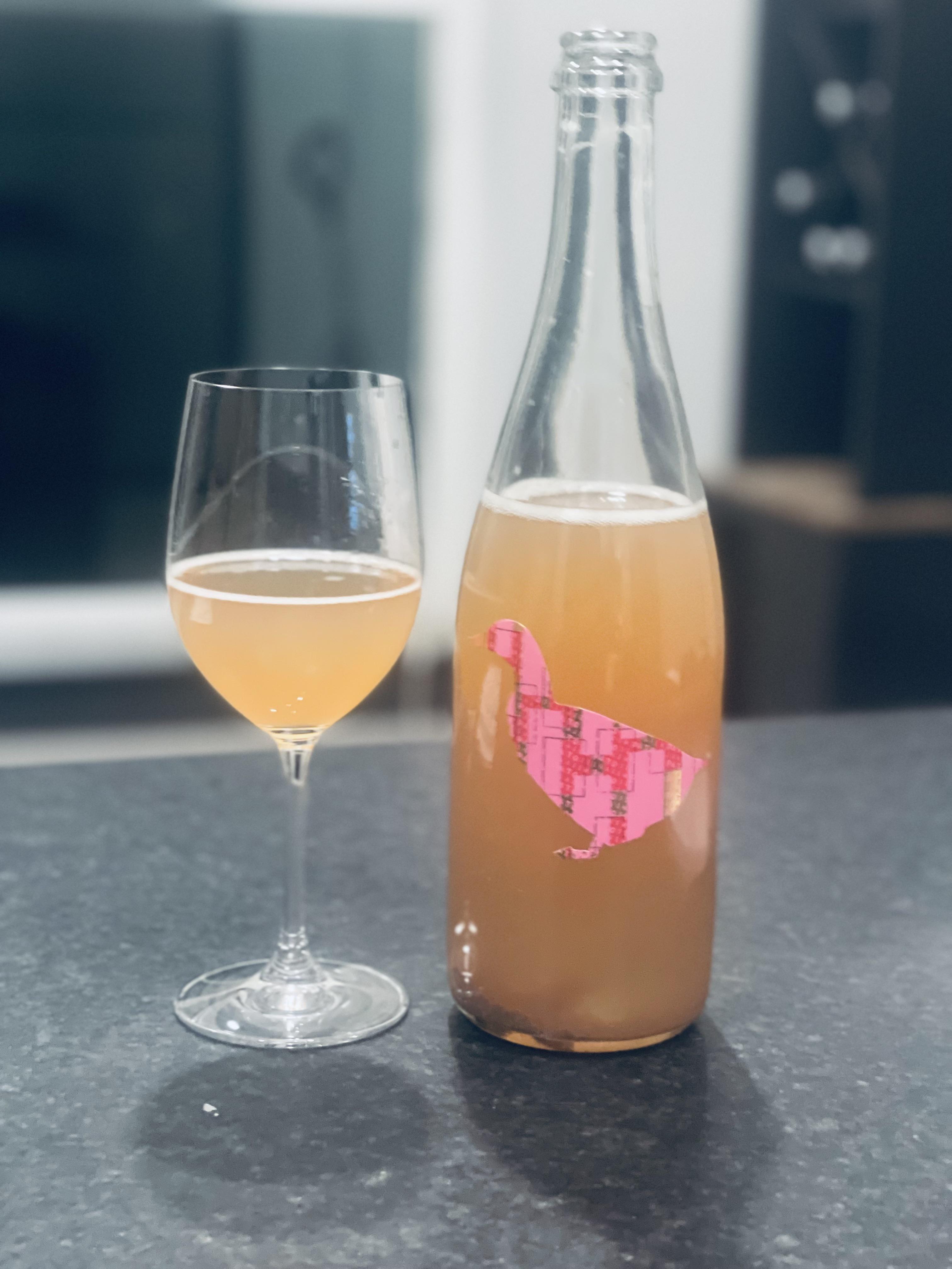 Color is a muddied orange with a pink hue, and loads of sediment settled to the bottom of the bottle. Citrus is predominant on the nose with notes of orange and grapefruit peel, and lime. The citrus notes follow onto the palate along with notes of melon and juicy strawberry. The sediment goes a long way in giving it a really interesting and full mouthfeel. Good effervescence, not overwhelming, and has a really nice acidity to it.