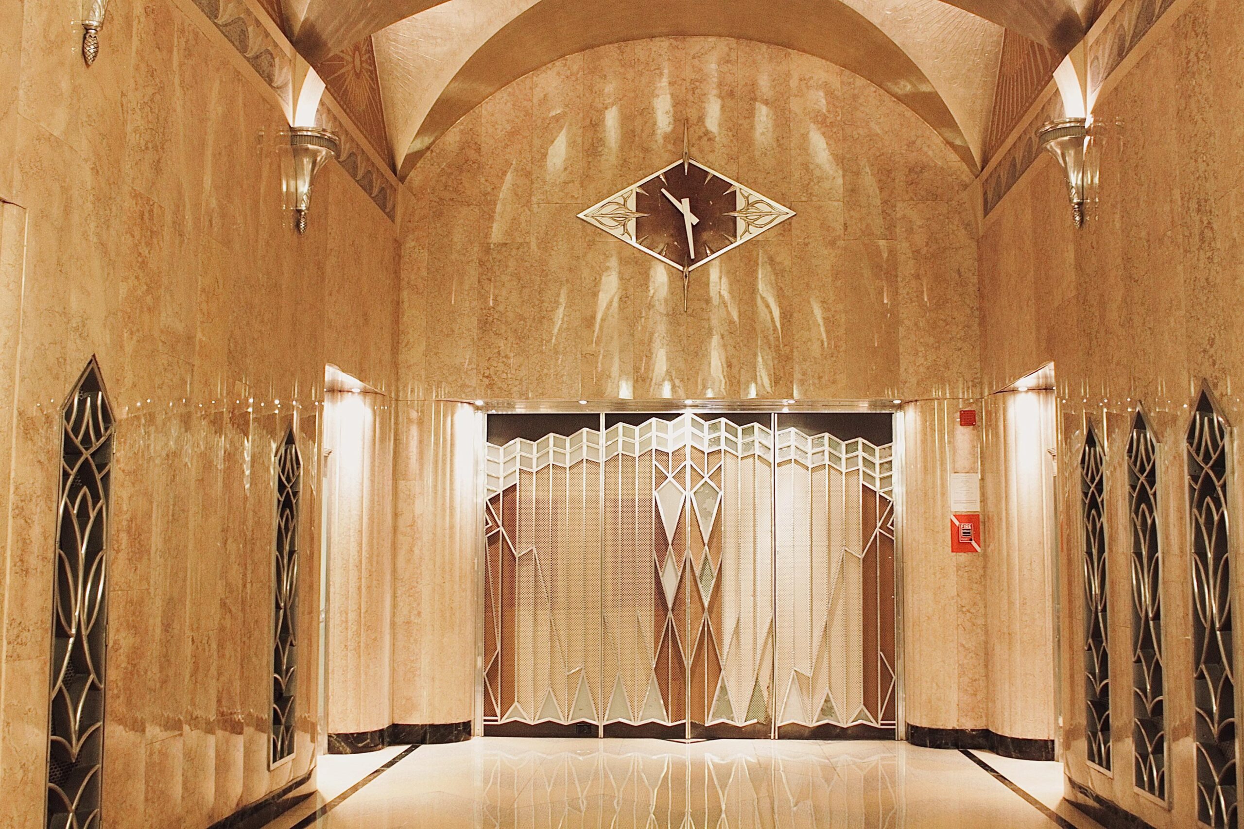 Beautiful art deco style. The details such as the wall sconces and sun images in the upper arches give it a feel of a house of worship for light & energy.