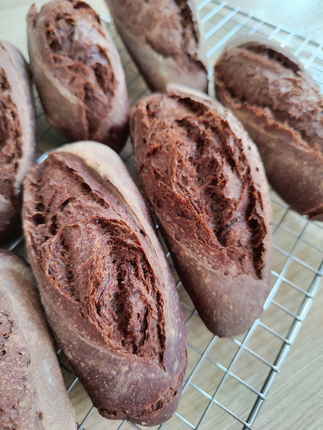 J’adore le pain au cacao, c’est un vrai ovni gustatif. Les vôtres ont l’air succulents, j’en prendrais bien une petite tranche!