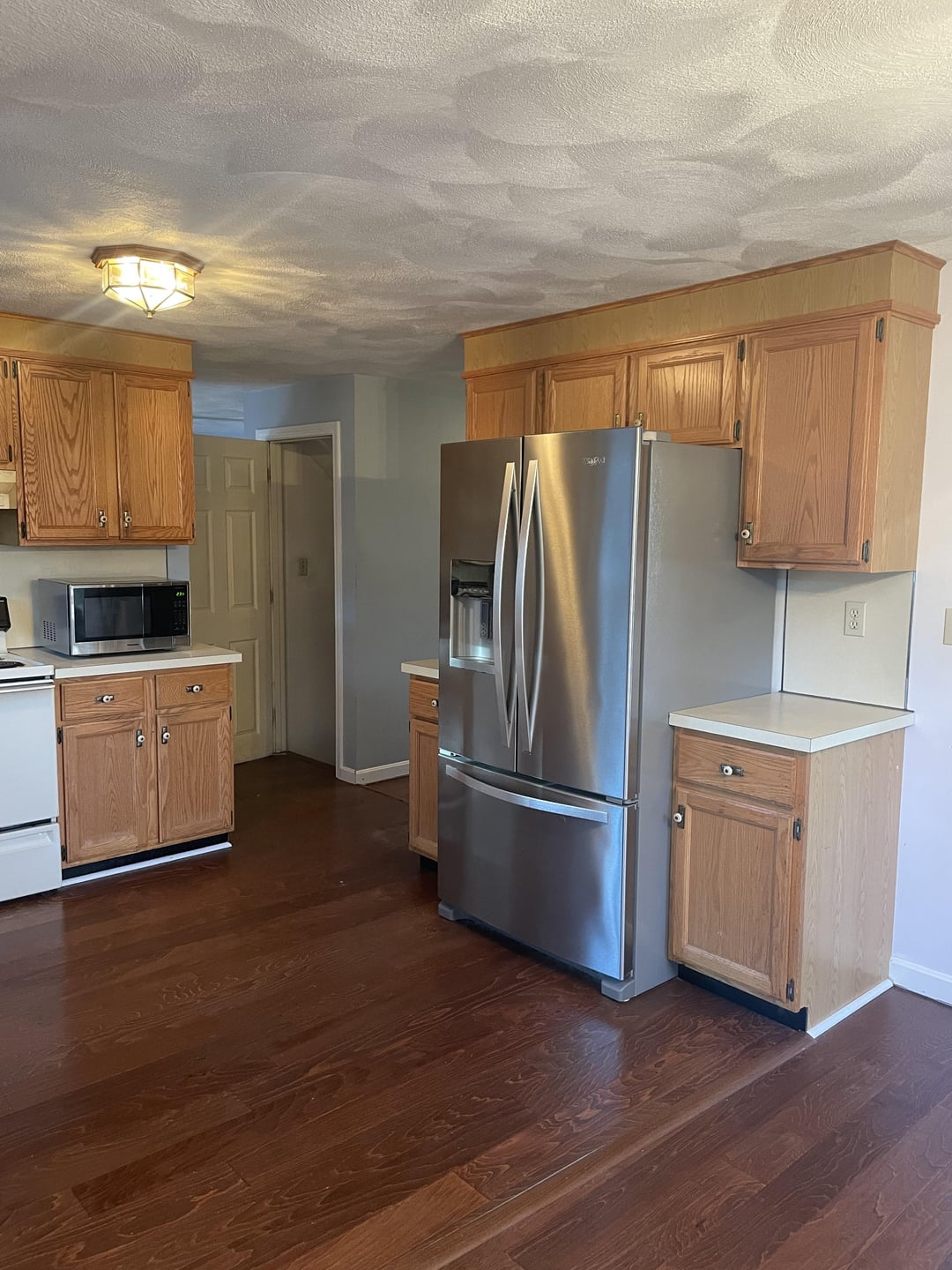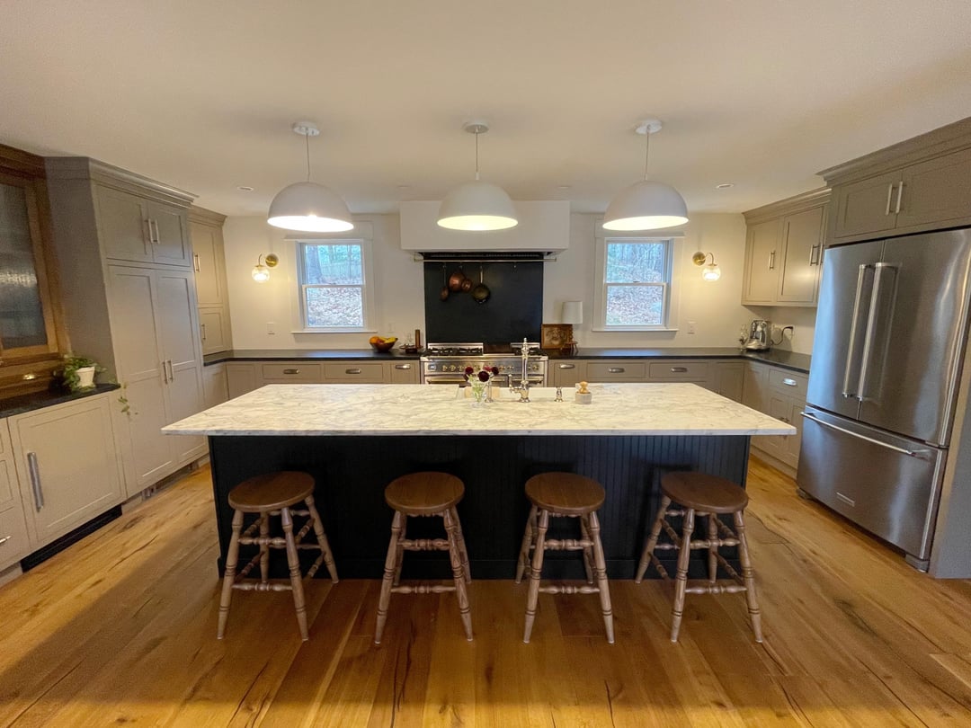 Looks good! I’m planning a kitchen that has a bunch of the same elements as yours. What alliances do you have? Is that a full depth fridge? And is most of your backsplash just bare wall? Or are you adding anything else.