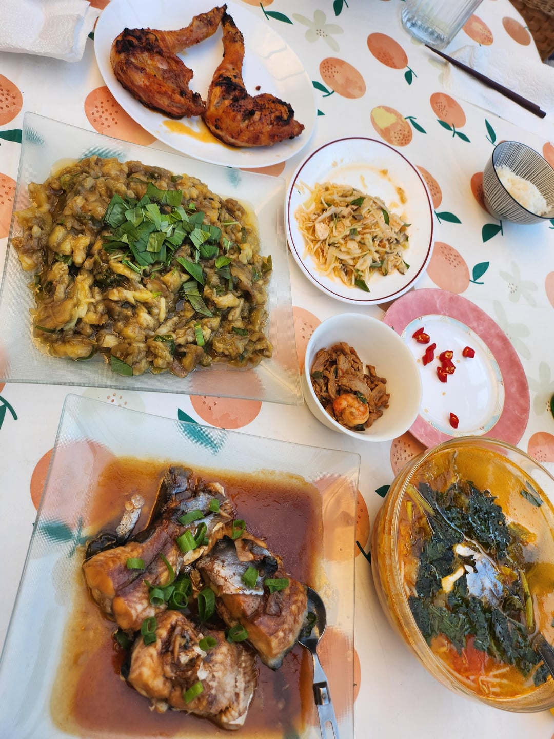 Rentrer chez Maman pour le week-end et reprofiter de sa cuisine vietnamienne : poisson au caramel, poisson aigredoux au tamarin, aubergine, cuisse de poulet rôtie, salade de chou et au poulet…