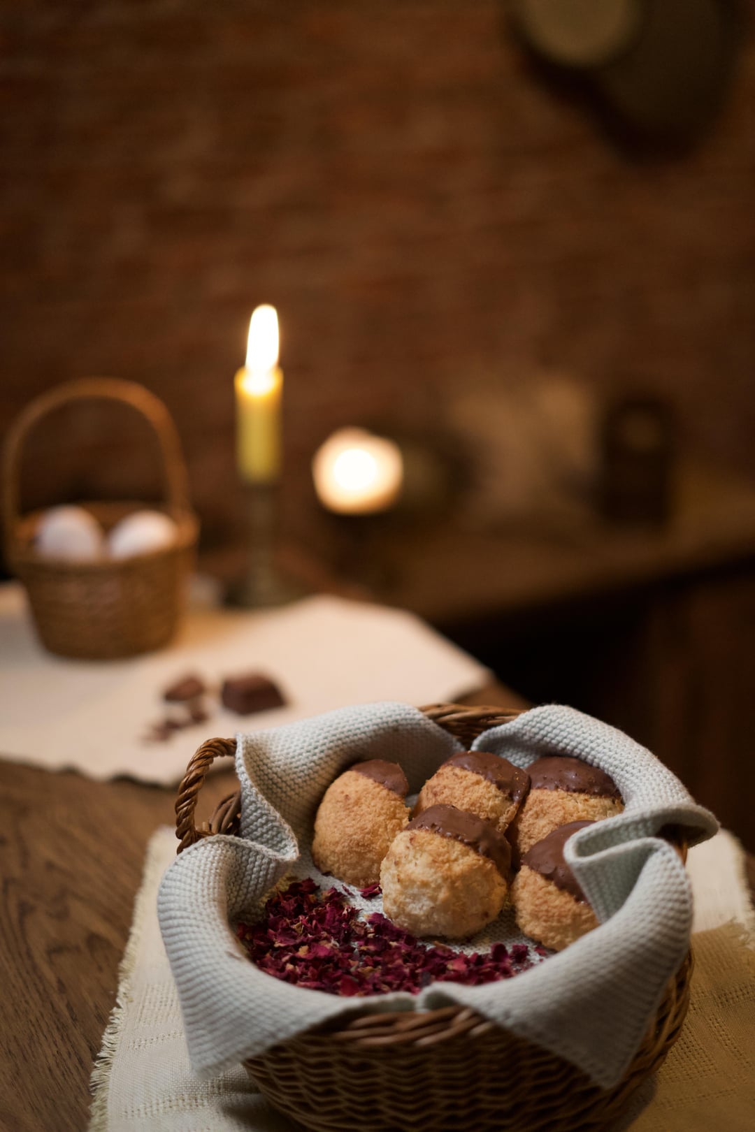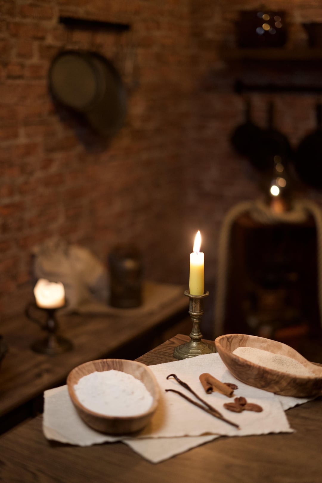 We can’t see the kitchen at all, just some brick and some staged items.
