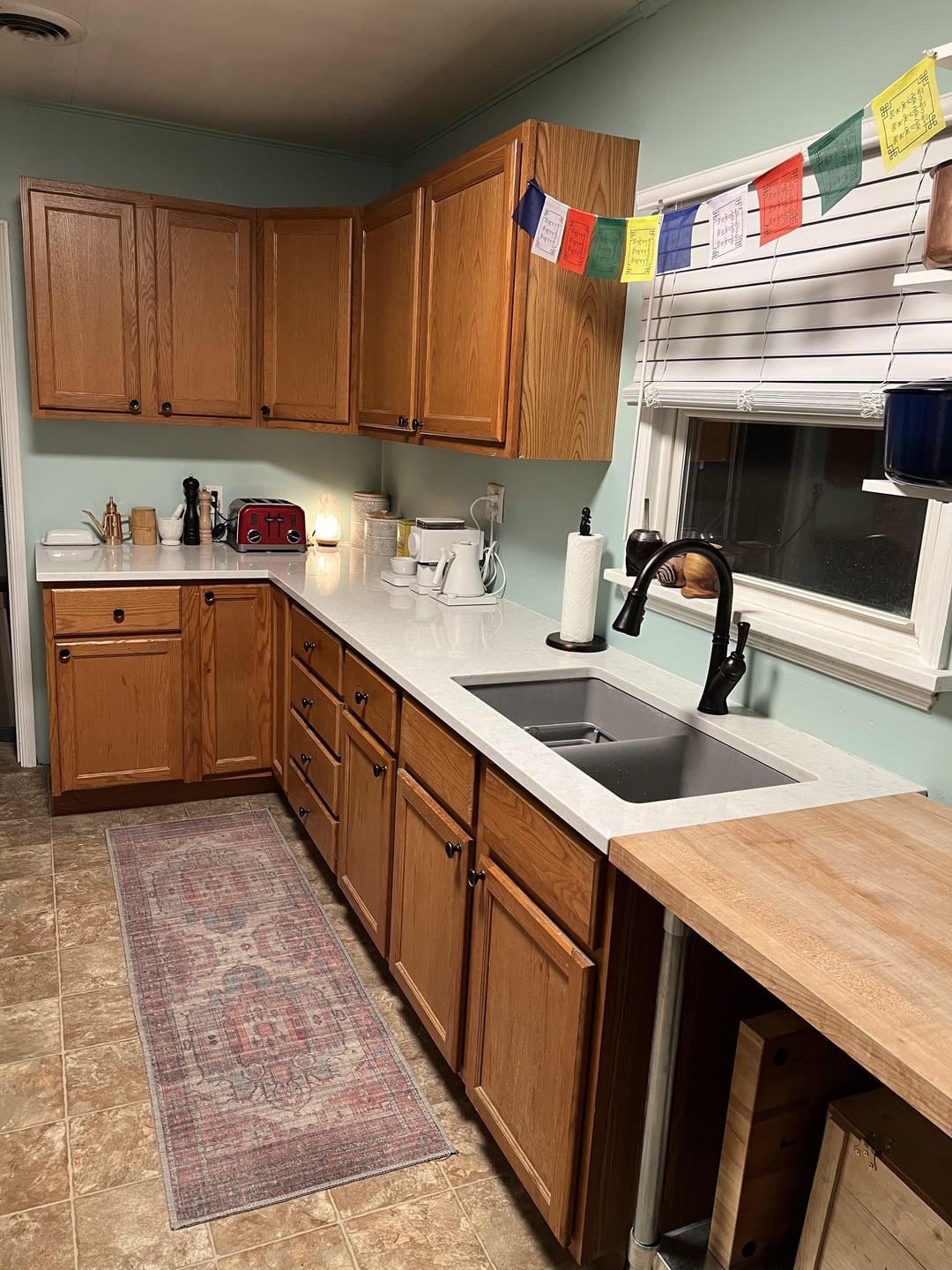 My kitchen was all beige everything when we moved in. We began with painting something other than beige and that led to rearranging some appliances and adding some quality countertops and cookware. Eventually, flooring, backsplash, and premium range. Regions represented in the decor: South America, France, Japan, Italy, and USA!