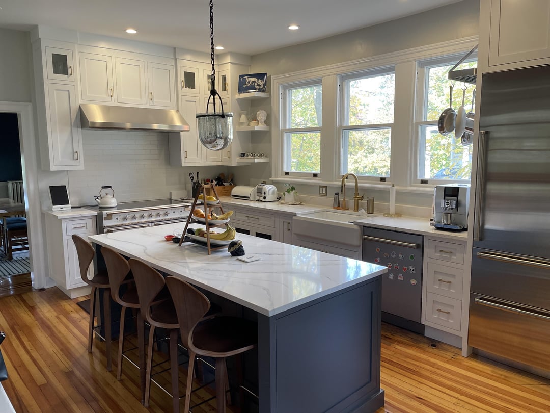 There is a butlers pantry and large pantry closet not pictured so don’t get concerned about food storage. The range is the 48” AGA Elise induction. It seemed to fit well with the style of the house.