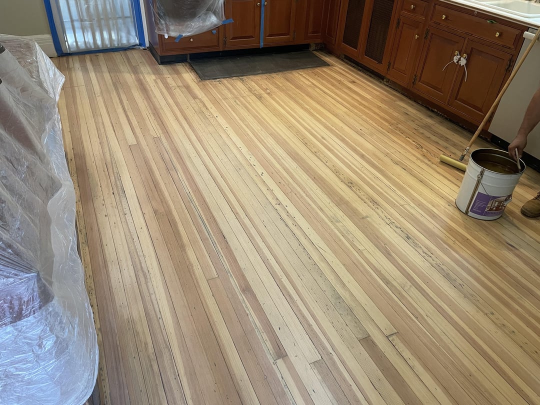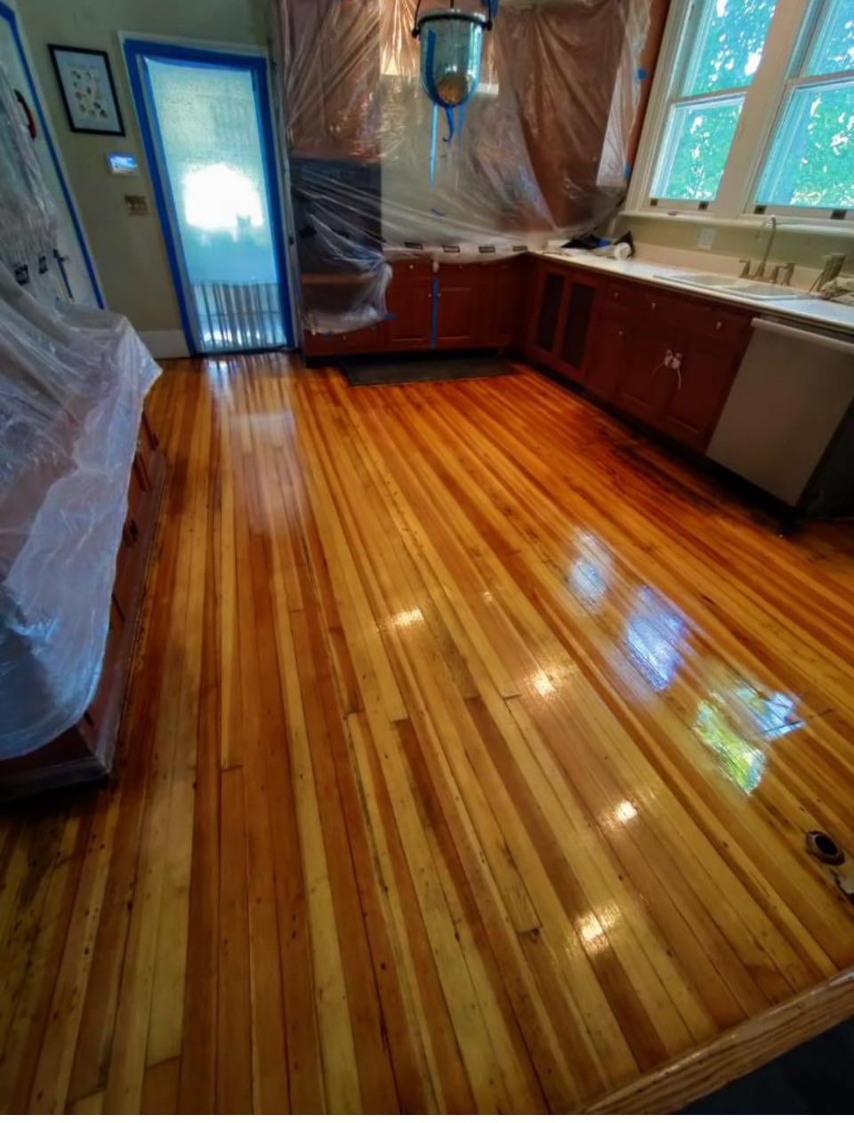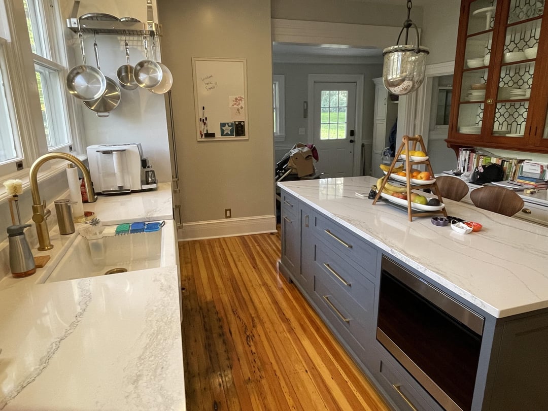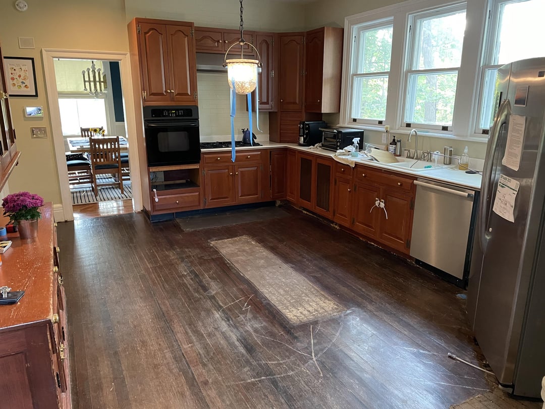 The original island isn’t pictured in the “before” picture but use your imagination, it wasn’t very exciting. We just sealed the floors after sanding, no new stain, old nails and all.