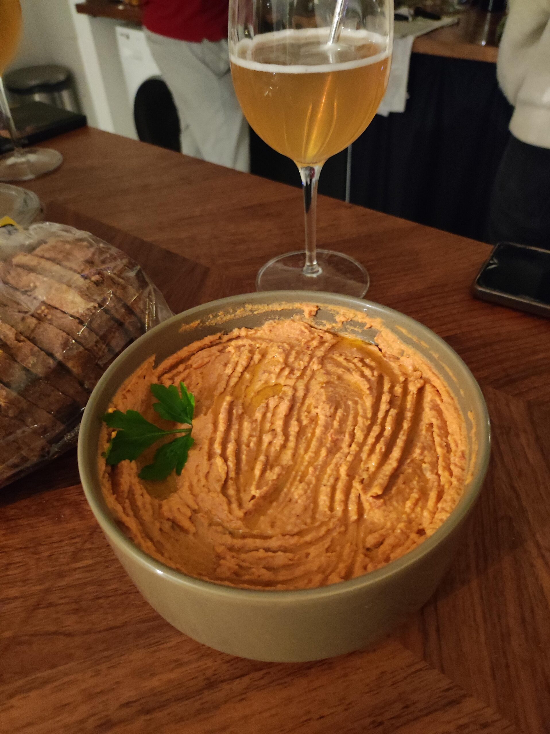 Houmous avec du poivron rôti c’est sympa aussi mais il faut le manger plus vite que le houmous de base.