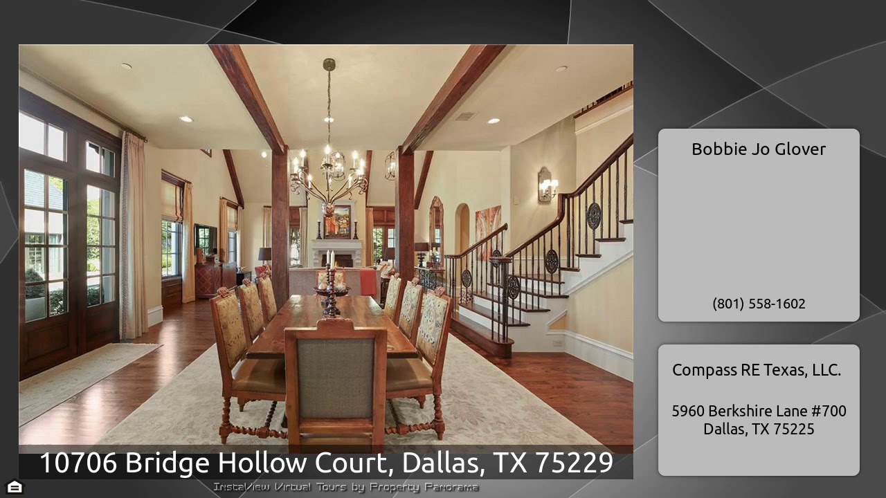 The Virtual Tour for the property at 10706 Bridge Hollow Court, Dallas, TX 75229 listed for $6,599,000: Other homes for sale by Bobbie Jo Glover of Compass RE Texas, LLC.: Exquisite French Chateau located in the private school corridor and the prestigious, gated Creeks of Preston Hollow. This breathtaking estate is a masterpiece of design and craftsmanship featuring 5 spacious bedrooms, 6.3 bathrooms, along with a soaring 2-story library, game room, fully equipped movie theater, 2 wet bars, climate-controlled wine cellar and an elevator to transport you from floor to floor. Separate guest …