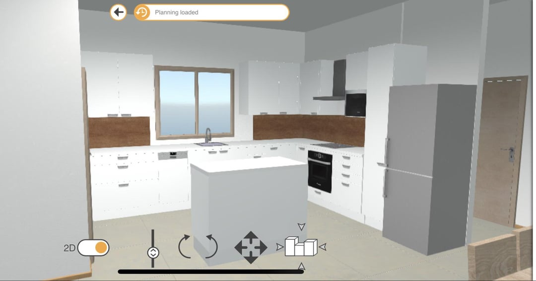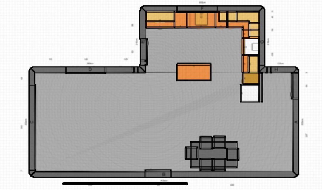 1. I might think about a bigger island that can fit 4, so you don’t need the dining room table 1. maybe move the microwave so it’s in the island 1. maybe add shelving above the fridge 1. maybe move the position of the vertical storage so it’s between the door and the window. this would allow me to do a bigger fridge or open up that side of the kitchen a little