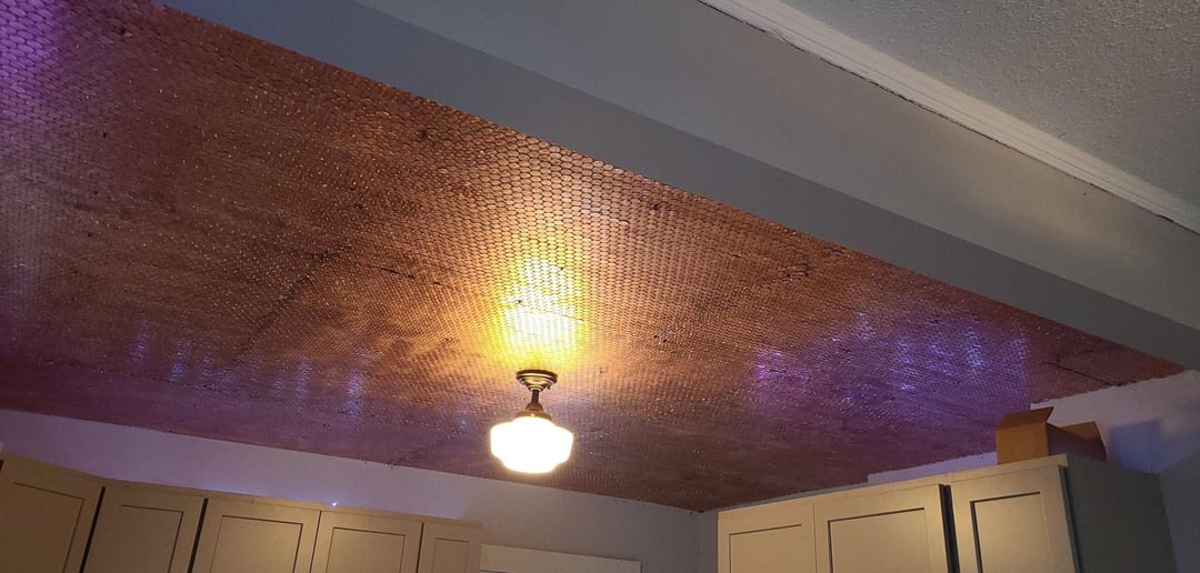 How long did the ceiling take? Stunning! I’ve only seen that treatment on a floor and can’t imagine doing it on a ceiling!