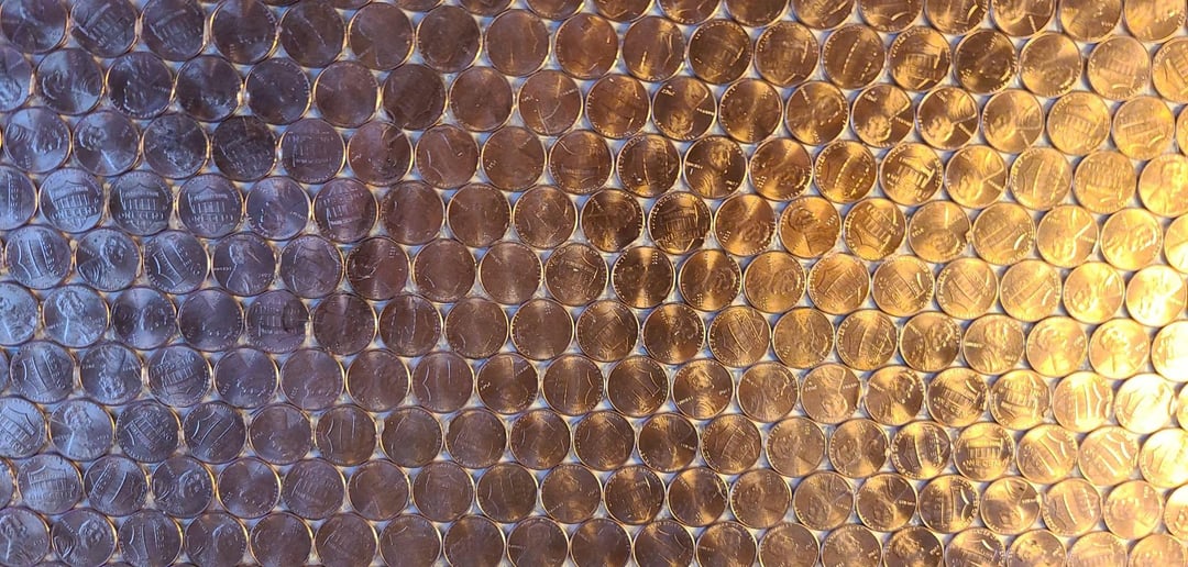 Might be the camera angle but the before photo looks like the counter angled back in an odd way. This looks so much better. Also – LOVE the copper penny ceiling! Copper is such a warm metal and the pennies make it so interesting. With the butcher block and brick, you have a welcoming, inviting vibe to your kitchen.