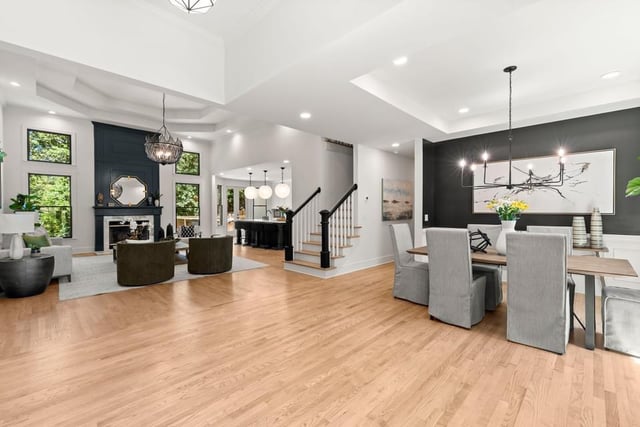 The tall windows to one side and view of the fireplace makes everything seem seamless. Beautiful space to make memories. Congrats!