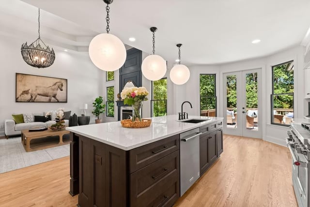 It’s nice, but a bit done already. Looks like every other kitchen rolling out in the last few years— white perimeter cabs, marble backsplash, quartz countertops, light wood hood, stainless appliances and contrasting island.