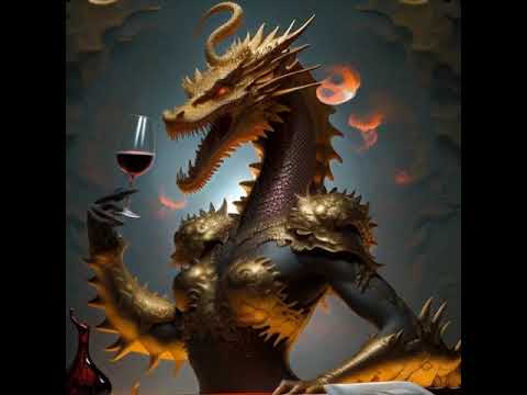 Steampunk Mexican Death Catrina and Wine Drinking Medieval Dragon