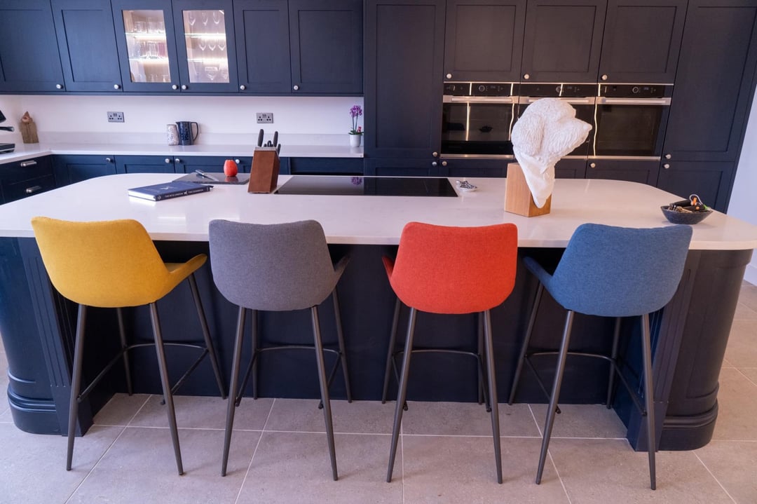 I would have done all yellow chairs. The kitchen is so smooth and perfect, then you get these 4 chairs.