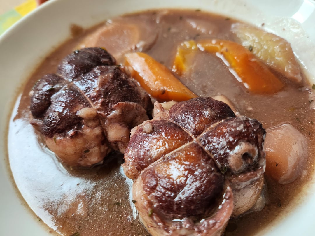 Paupiettes de veau façon bourguignon, avec panais et carottes. by Pyram7 Bonne BouffeCuisine d'ici et d'ailleurs 2 Comments clemmit_ 3 years ago J’aurais jamais pensé à faire du veau bourguignon et non du paleron de bœuf… Ca parait savoureux ! Un conseil la prochaine fois : rajoute des oignons, des poireaux et des clou de girofle 😉 SweetyDonkey33 3 years ago Excellente idée ! Je testeraiWrite A CommentYou must be logged in to post a comment.