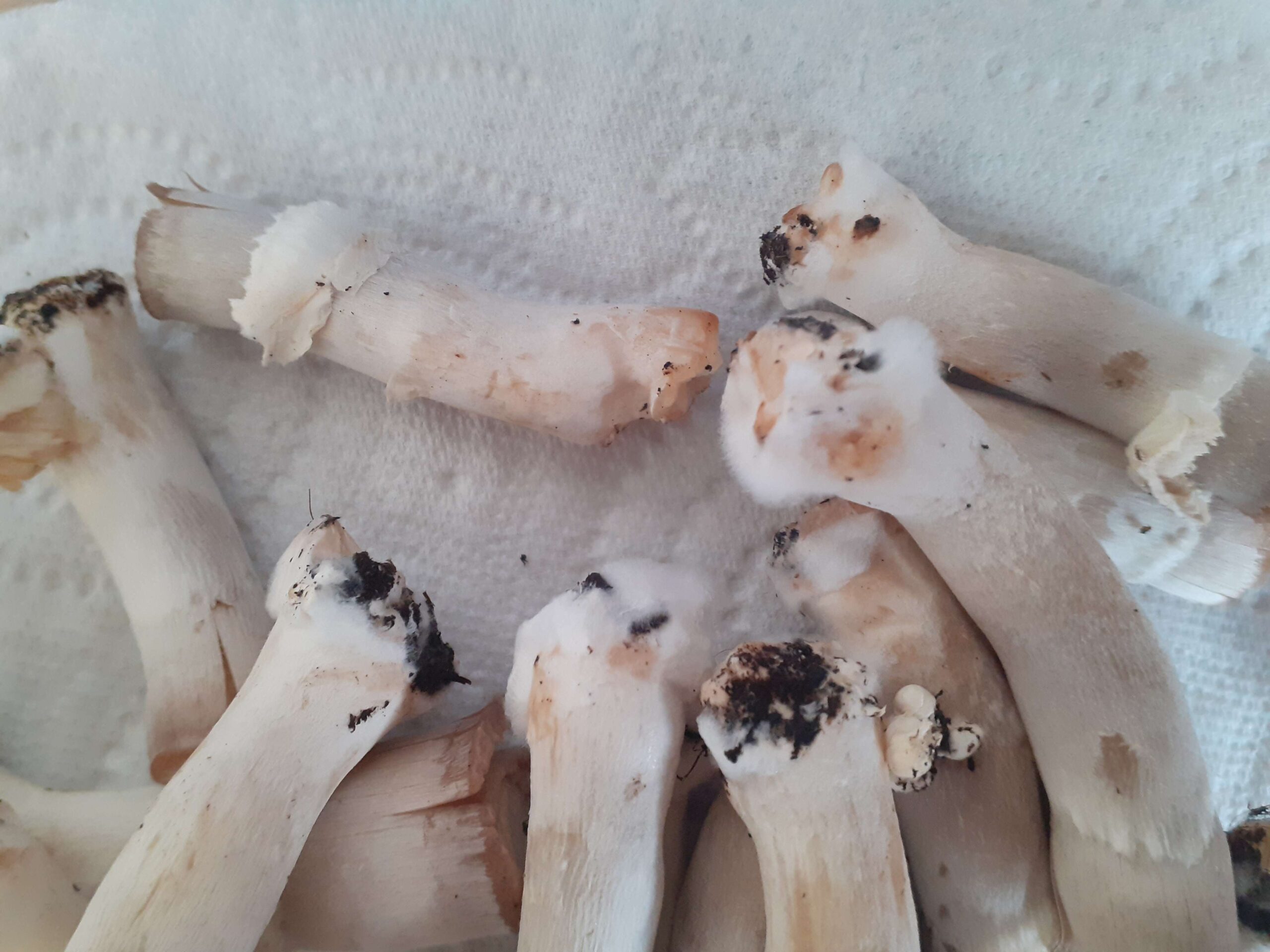 Aucun risque, puisque ces « poils blancs » ne sont pas une contamination, mais bien du mycelium de ce même champignon, qui essaye de continuer à se développer comme s’il était encore en terre.