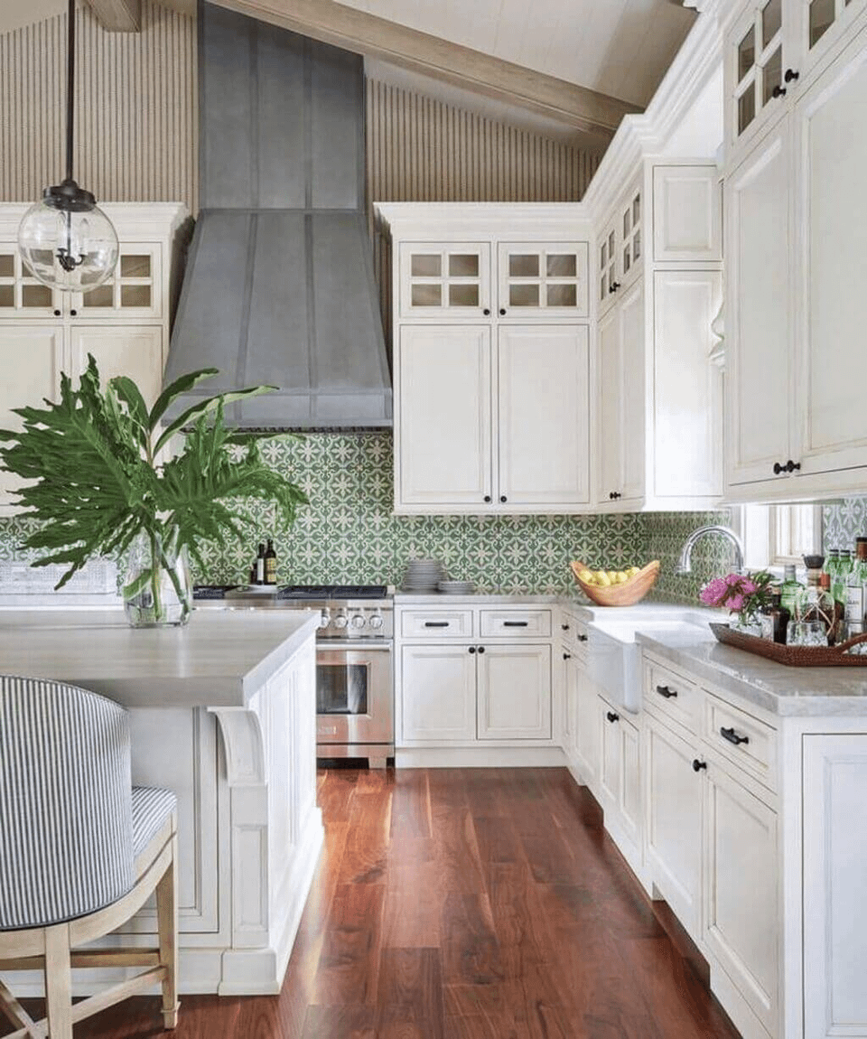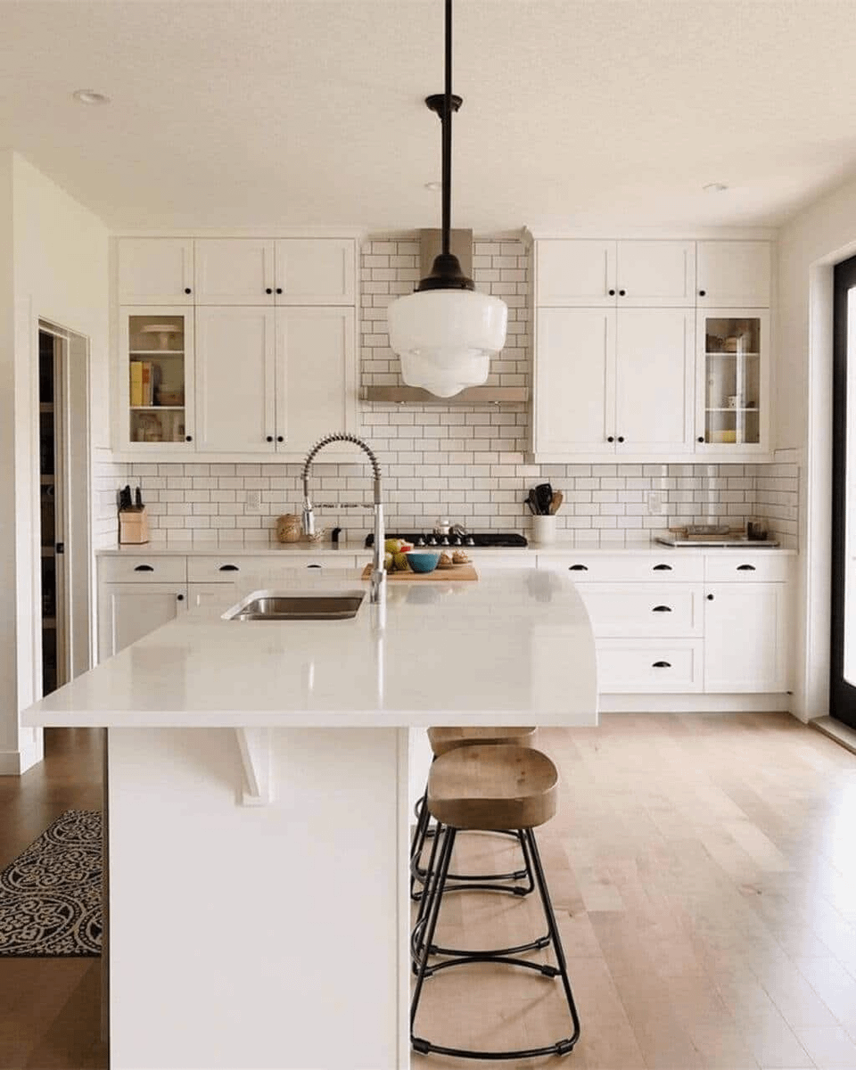 Grew up with white California modern kitchen with an island. The curvature on the island is subtle modernization. Also I’m certain I have those stools in my current apartment…?