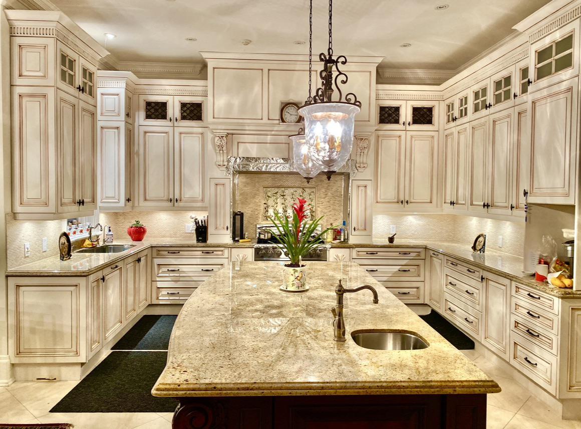 Kitchen dream (4032 x 3024) [OC] Toronto, ON. Italian Marble single slab, high ceilings , French influence