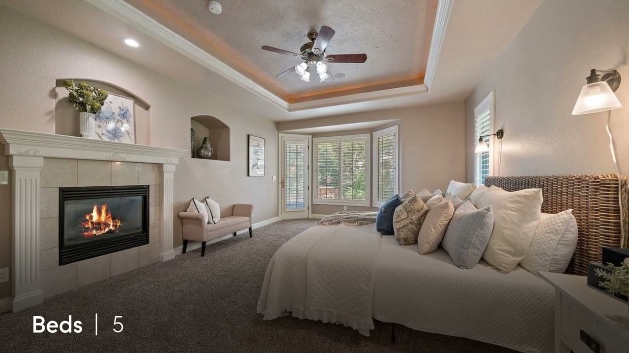 Prepare to be enchanted by this extraordinary residence, nestled on a sprawling corner lot adorned with mature trees and expertly crafted landscaping in both the front and back yards. As you step inside, a welcoming foyer, soaring two stories high, extends its gracious embrace. The journey through this home begins with a stunning home office, hinting at the delights of the open concept floor plan that lies ahead. To the left, a grand formal dining room awaits, boasting a beautifully coffered ceiling that elevates every dining experience. Beyond, the grand family room captures your heart with its vaulted ceiling, skylights illuminating the space, and majestic floor-to-ceiling windows that frame enchanting vistas. This flows seamlessly into a gourmet kitchen, with a large island, charming breakfast nook, and breathtaking panoramas that invite culinary inspiration. Open the French doors to reveal an expansive deck, where you can bask in the splendor of a private backyard adorned with a beautiful water feature—a sanctuary of peace and serenity. On the main floor, a stunning master suite awaits, spacious ensuite bathroom and not one, but two walk-in closets. Ascend the stairs to find three more bedrooms, each with walk-in closets, private bathrooms, and views of the Rocky Mountains. Descend to the walkout finished basement, with extraordinary wet bar, complete with a wine fridge, sink, and dishwasher, full refrigerator—a haven for hosting unforgettable gatherings. The adjacent family room gracefully opens to a covered patio and beautifully landscaped backyard. The basement also offers the versatility of an exercise room, which can easily transform into a fifth bedroom, accompanied by its own bathroom, and laundry (bonus 2nd full bath…so many future options for all this space). Throughout this home is plantation shutters, ceiling fans, exterior NEW JELLYFISH LIGHTENING. Truly one-of-a-kind home! Don’t miss the 4 car garage and private bonus room, and loft in garage.