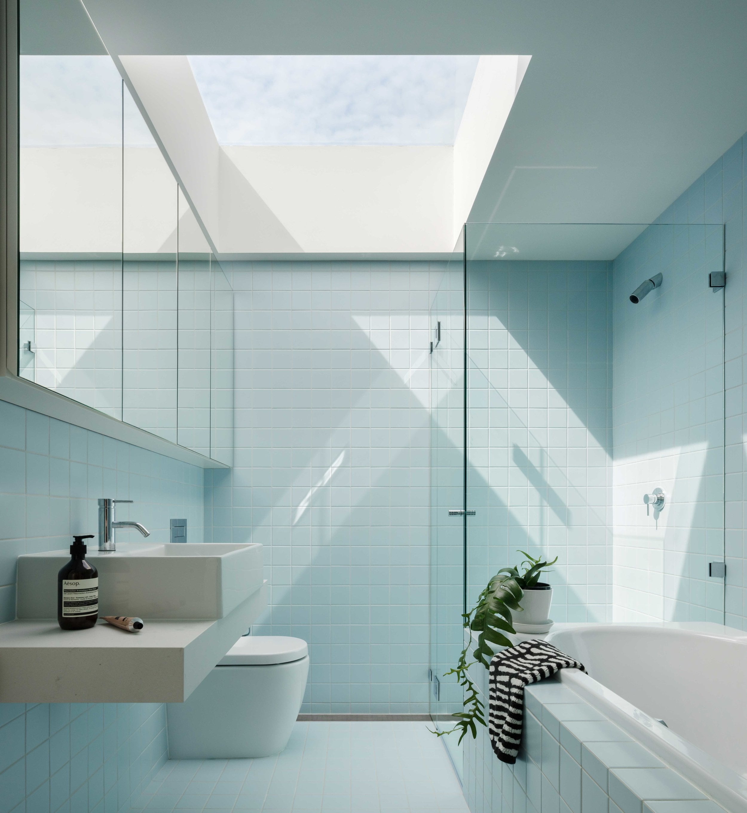 Tiled bathroom with a skylight, Maroubra, Sydney, Australia [2500×2719]