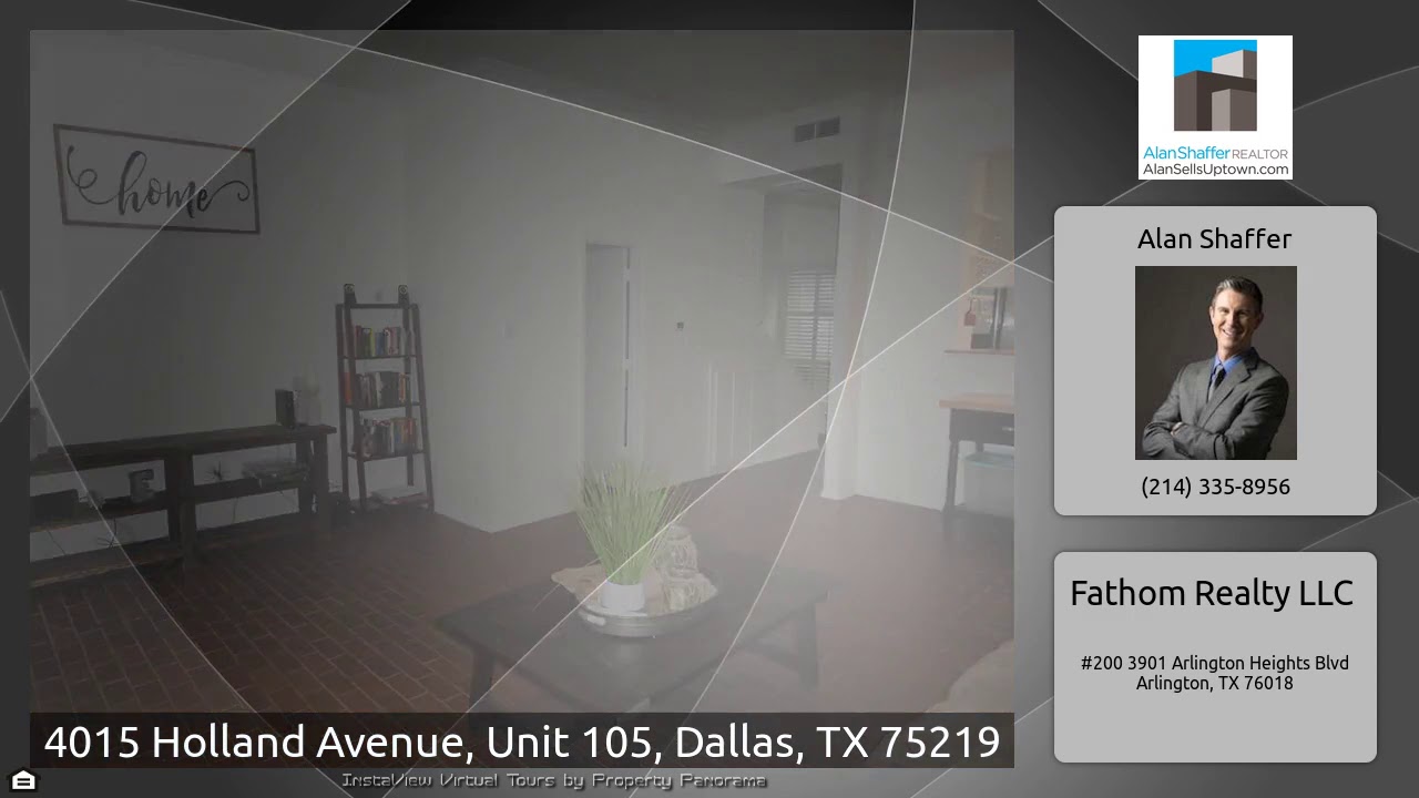 The Virtual Tour for the property at 4015 Holland Avenue, Unit 105, Dallas, TX 75219 listed for $239,900: Other homes for sale by Alan Shaffer of Fathom Realty LLC: End unit, two story split level condo in North Oak Lawn.Home features a spacious kitchen with pass through to dining area. Granite counters, & stainless appliances. Brick flooring is very pet friendly. Tall ceilings with french doors flanking the raised hearth fireplace lead to private outdoor patio. Downstairs HVAC just replaced Oct 2019. Side by side washer dryer connections in utility closet. Attic storage too.