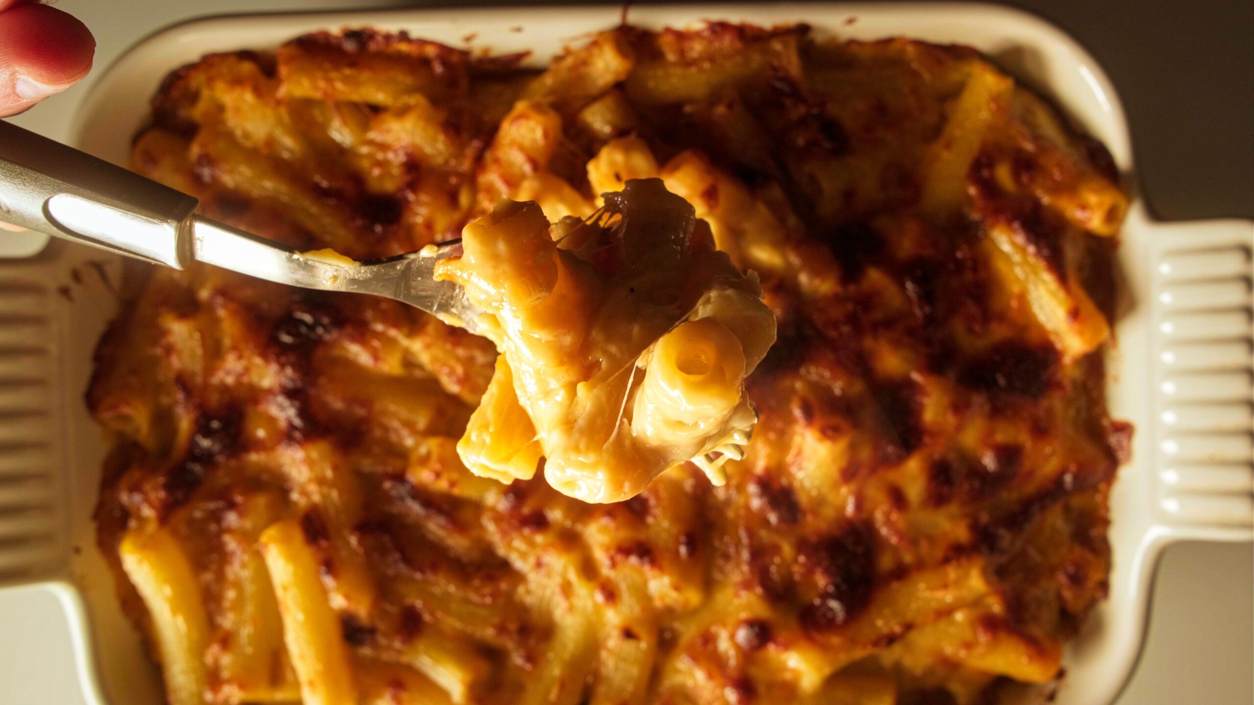 11. Mélangez les oignons caramélisés, les pâtes et la cheesy béchamel